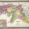 From Mitchells increasingly rare 1849 New Universal Atlas, with distinctive green and pink hand-colored border. Shows major transportation routes, towns, and rivers. We at ASI are excited to be able to offer this beautiful and valuable series of maps – don”t miss this opportunity to own an 1849 Mitchell map! This map has an inset of “Environs of Constantinople”. ‘