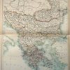 This beautiful map was made by Adam and Charles Black in 1889 for the library eddition of “The Scribner-Black Atlas of the World” and also for Black’s General Atlas of the World”. Turkey in Europe, Greece, Roumania, Servia, and Montenegro are illustrated on this map. Details include identification of regions, important cities, railroads, major roads, rivers, lakes, and mountains. This map is in very good condition with only slight age toning and bright, crisp color.