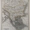 E. V. Monin made the “Atlas Universel de Geographie Ancienne & Moderne en 42 Cartes” in 1822 in Paris. Bright colors highlight regions on these small, but detailed maps. This hand colored, French map illustrates Turkey in Europe. The names of regions, important cities, mountain ranges, lakes and rivers are identified. These old maps are in very good condition with unique outline coloring.