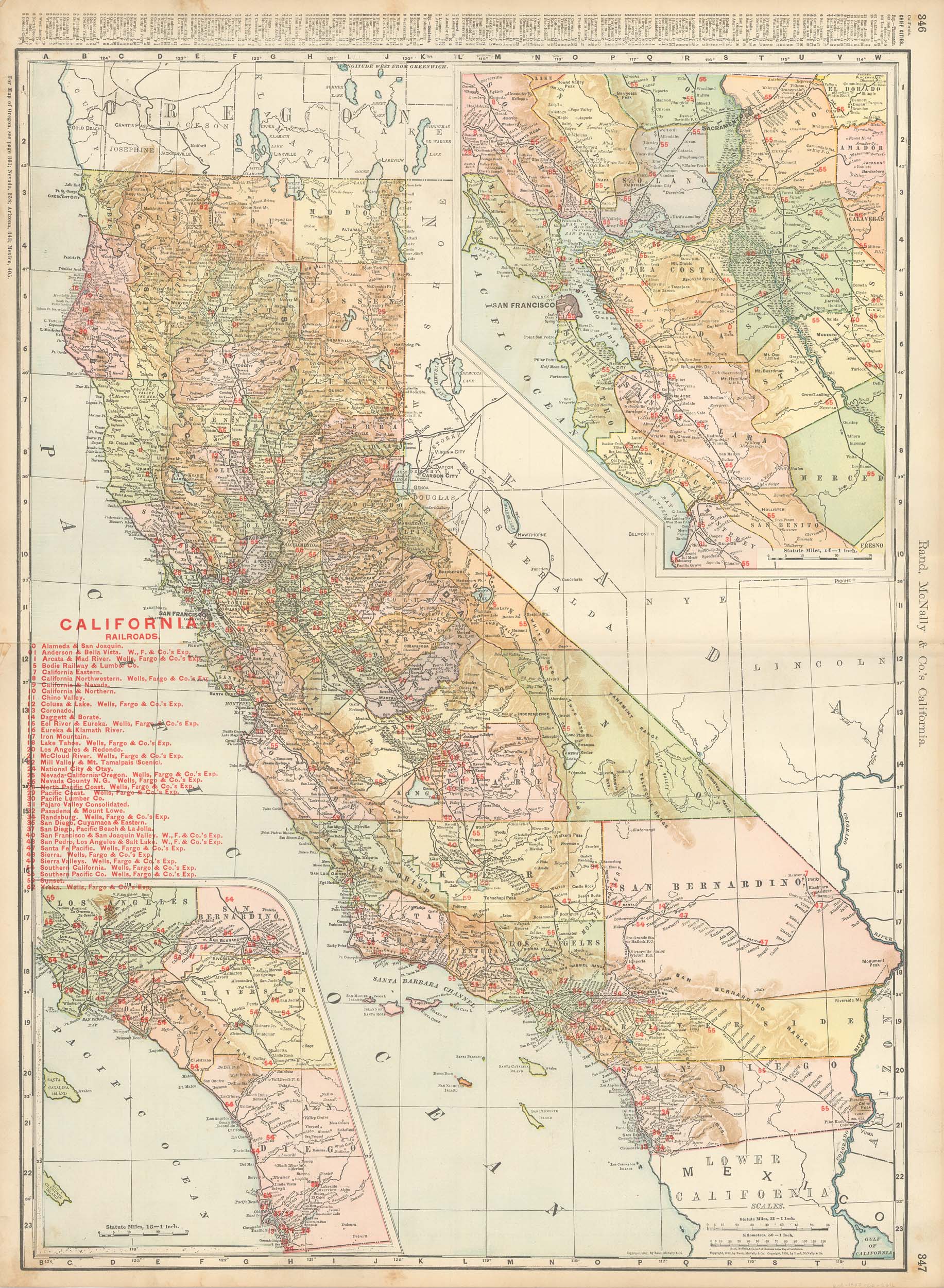 We are proud to offer this wonderful large scale map originally issues as part of Rand, McNally’s Enlarged Business Atlas and Shippers Guide, Showing in Detail the Entire Railroad System in 1902. The maps from this atlas were larger than most atlas’ published at the time and show many more cities and towns. All railroad lines were drawn in red and numbered with a listing of all railroads operating in the state on each map. William H. Rand founded the company in 1856 and incorporated it in 1873 with his partner Andrew McNally. They published their first atlas, The Business Atlas, in 1877. Rand McNally and Company is the oldest business of its kind in the country.