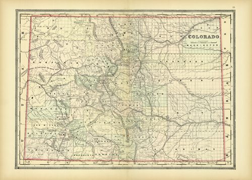 This beautiful, hand colored, steel plate engraved map of Colorado was made by William Bradley & Bros. in 1889. Pastel color distinguishes regions on this very detailed map from the hard to find map-maker. Counties, important cities, rivers, lakes, and mountain ranges are identified on the map.