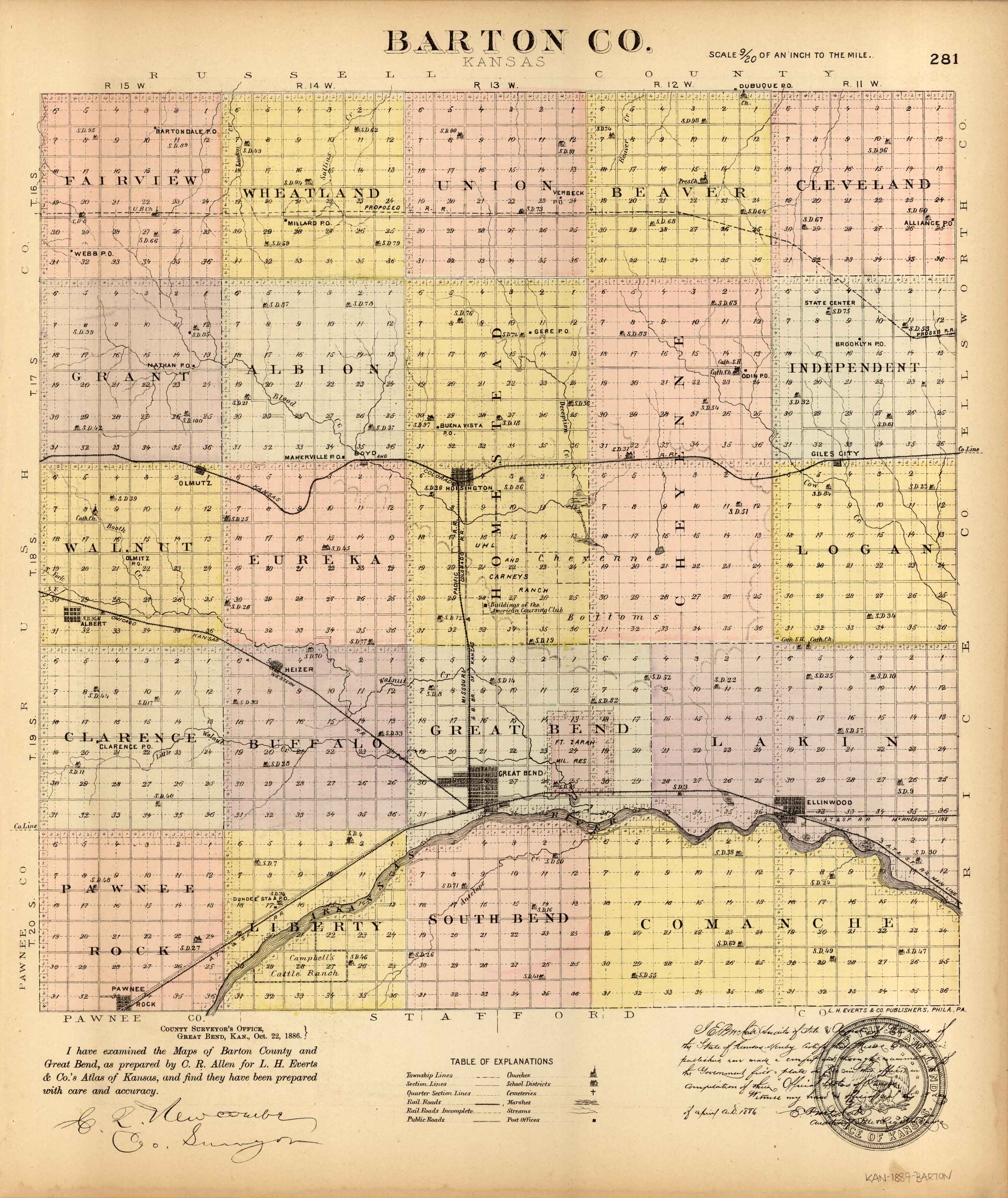 L.H. Evert’s 1887 Map of Barton County, Kansas