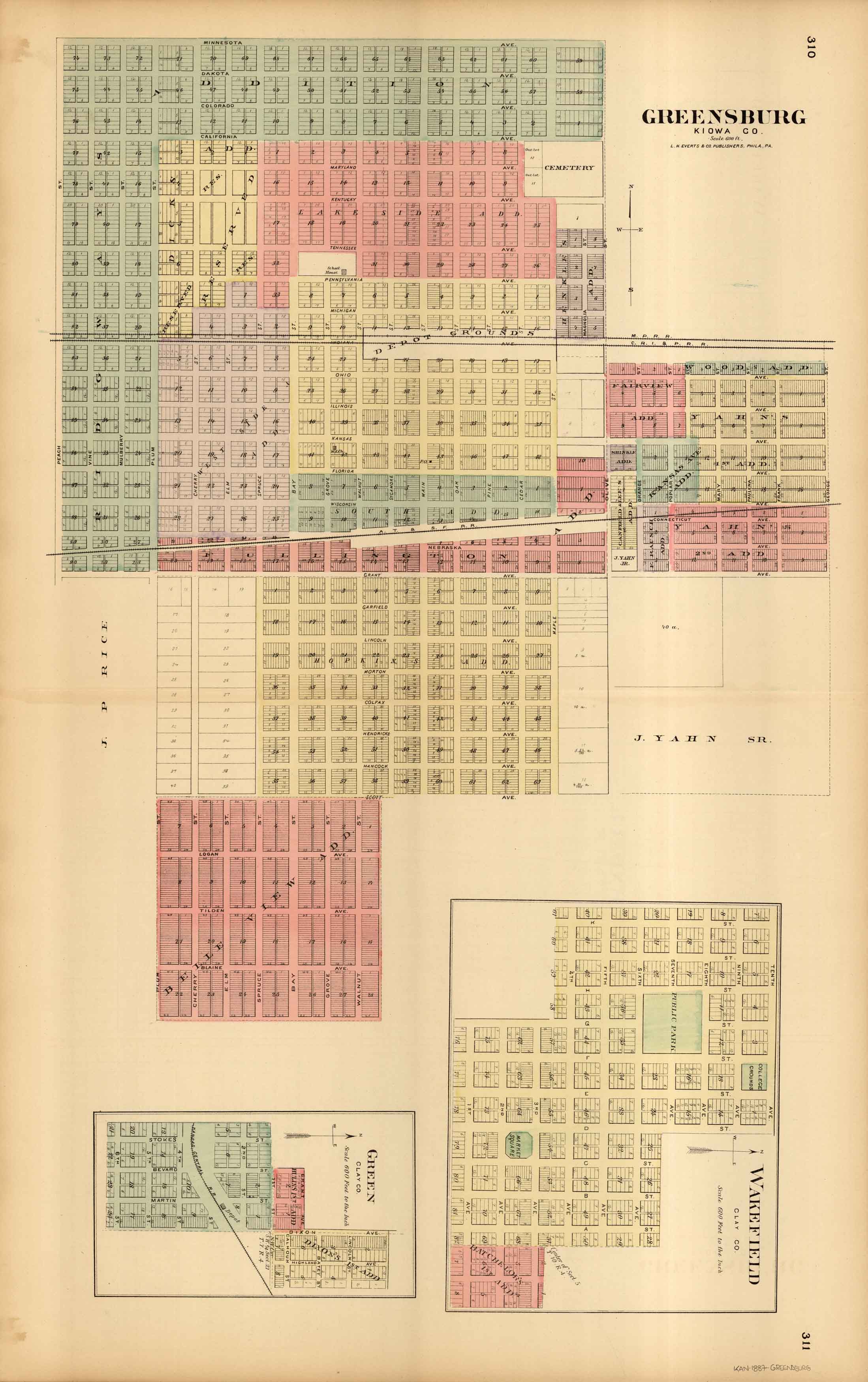 L.H. Evert’s 1887 Map of Greensburg, Wakefield, and Green, Kansas