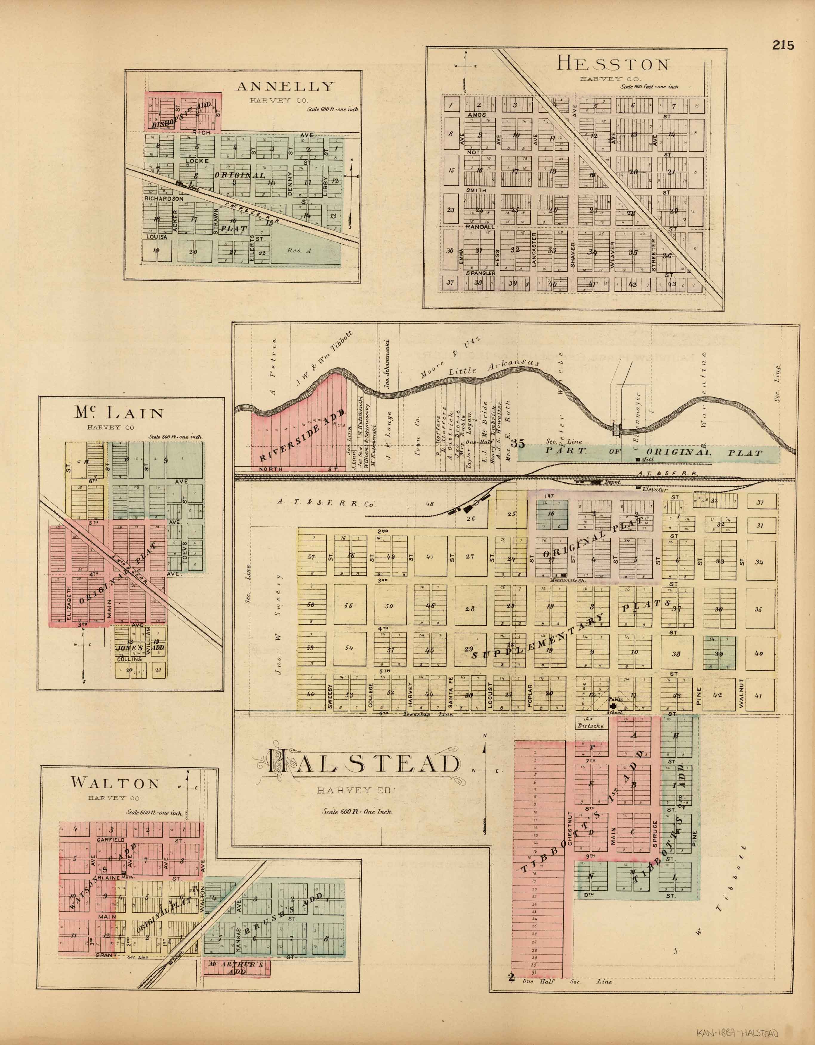 L.H. Evert’s 1887 Map of Halstead, Annelly, Hesston, McLain, and Walton, Kansas