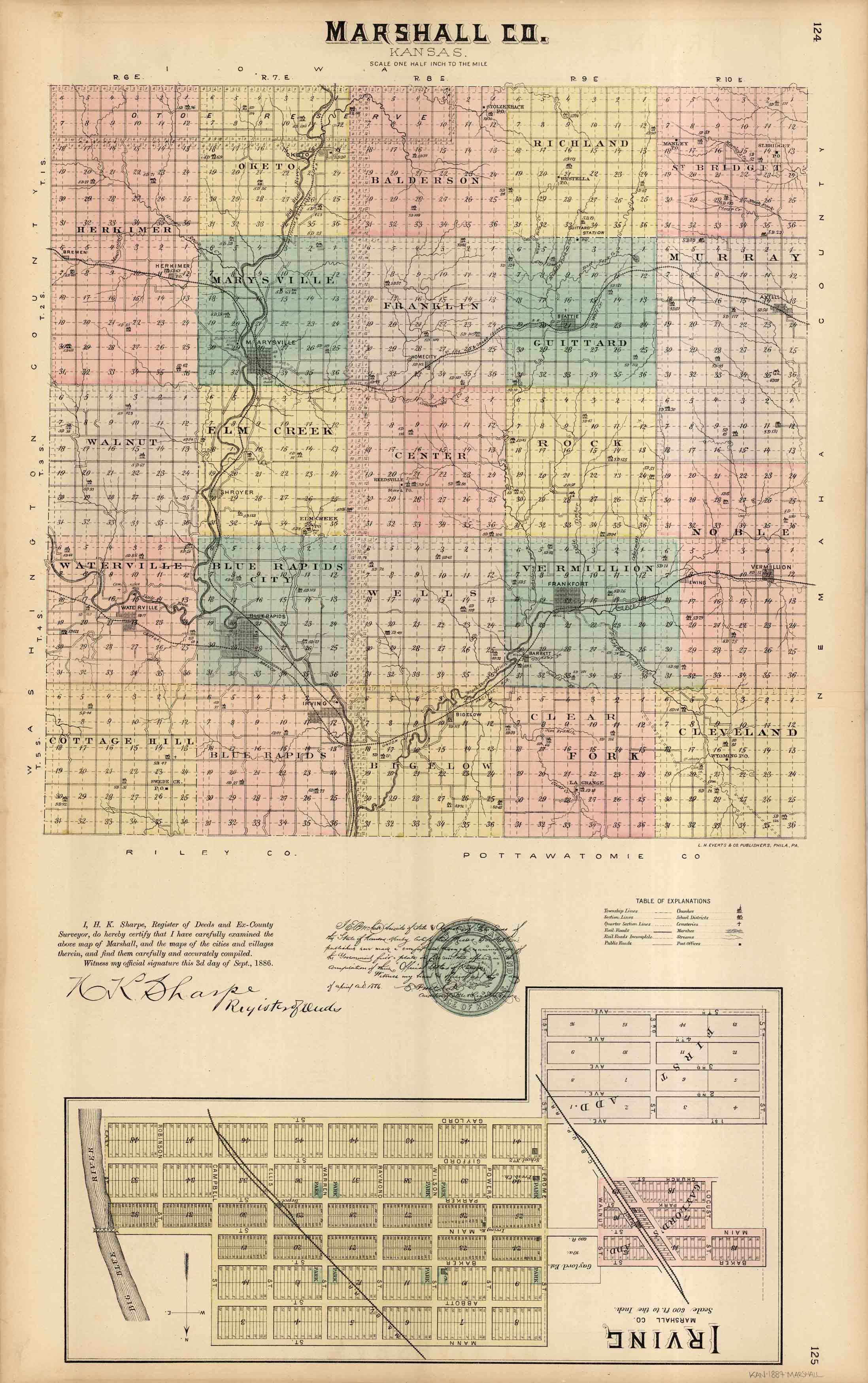 L.H. Evert’s 1887 Map of Irvine and Marshall County, Kansas