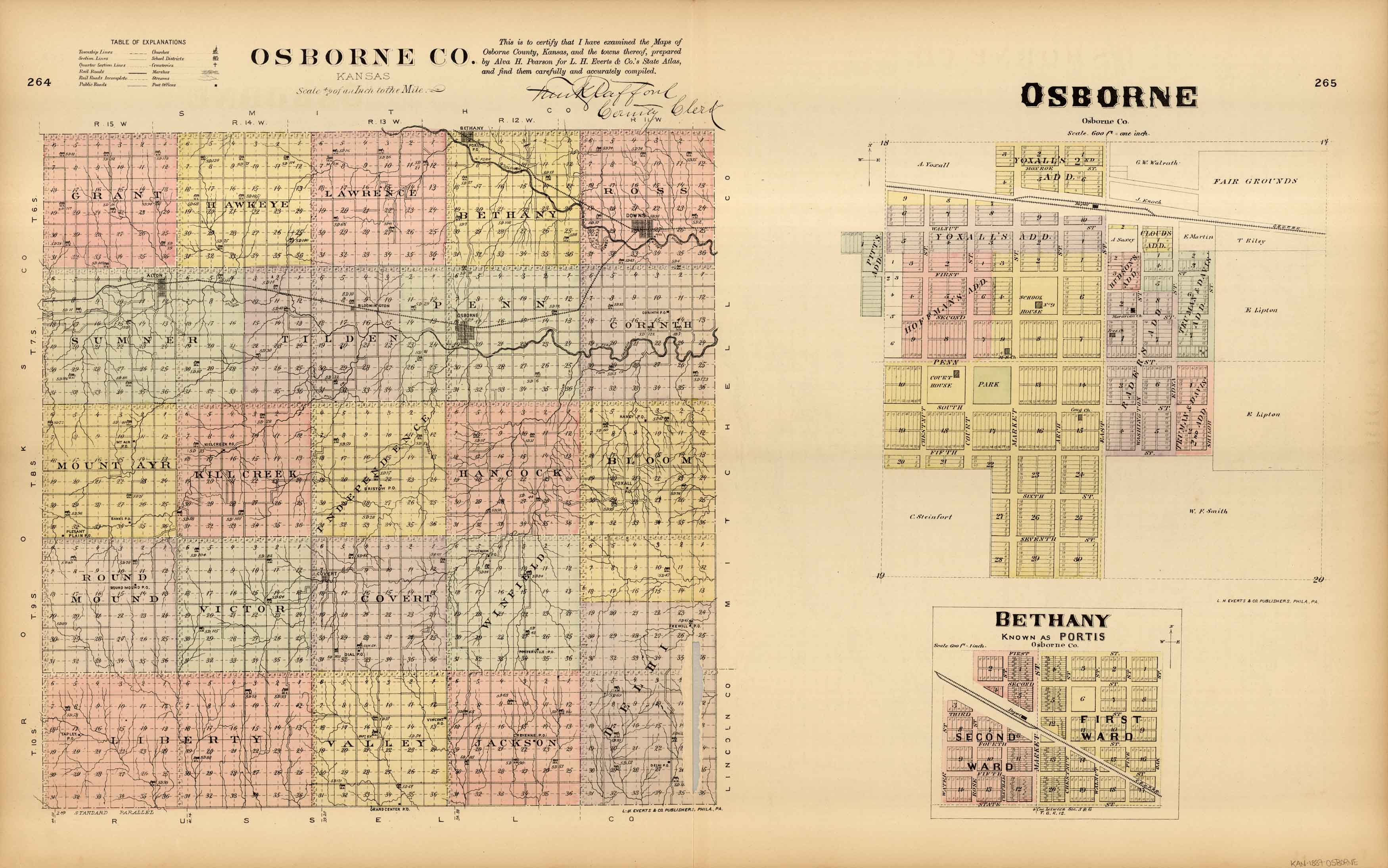 L.H. Evert’s 1887 Map of Osborne County and Bethany/Portis, Kansas