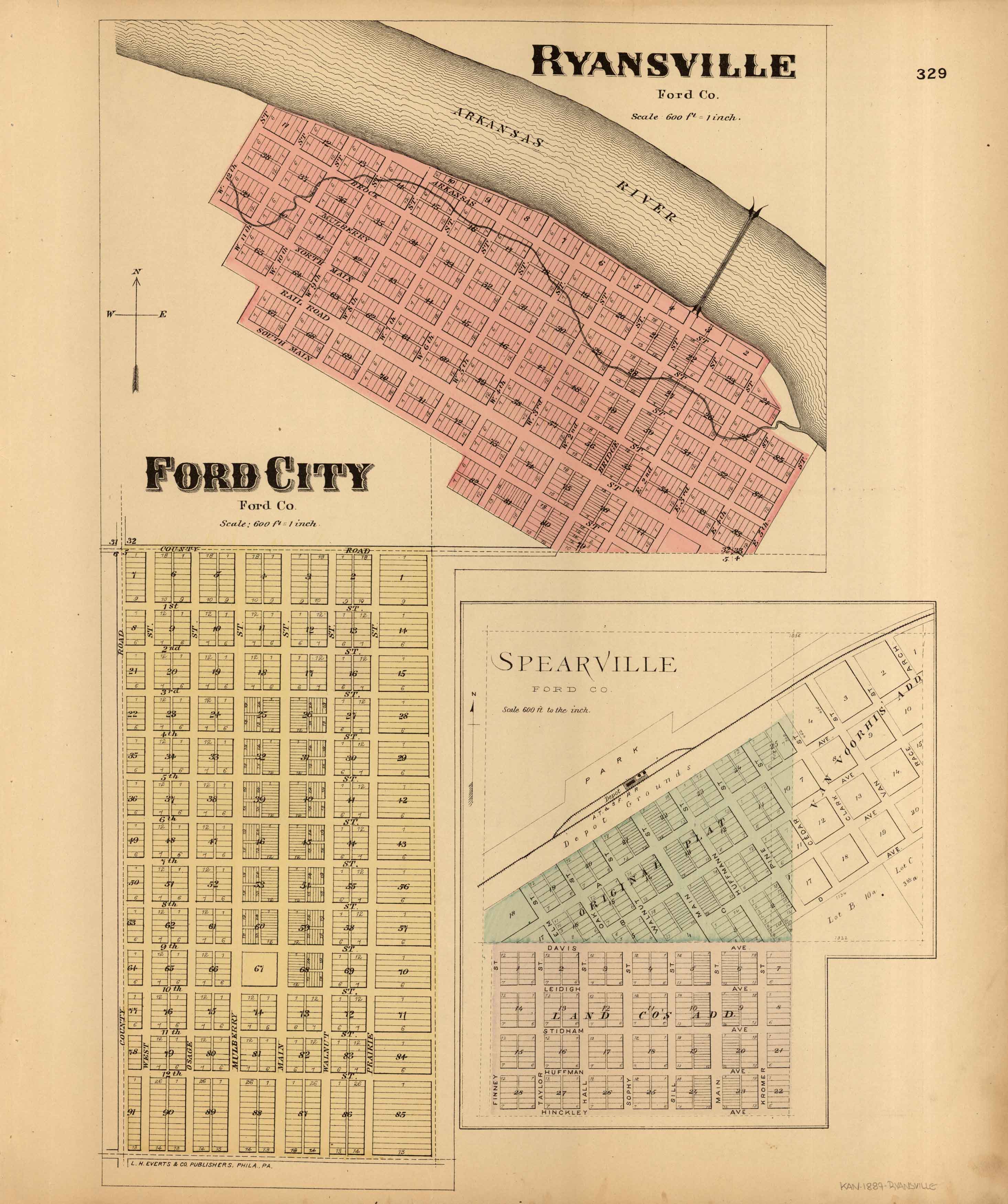 L.H. Evert’s 1887 Map of Ryansville, Ford City, and Spearville, Kansas