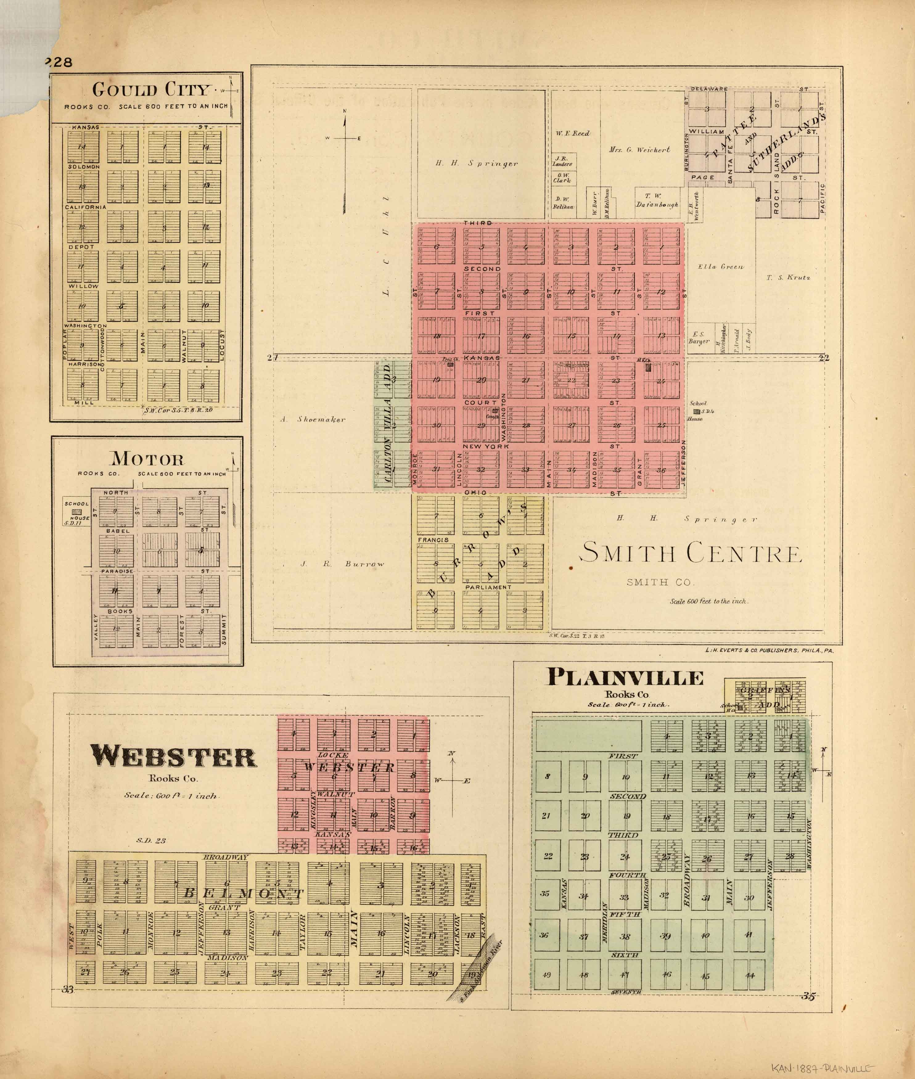 L.H. Evert’s 1887 Map of Plainville, Webster, Motor, and Gould City, Kansas