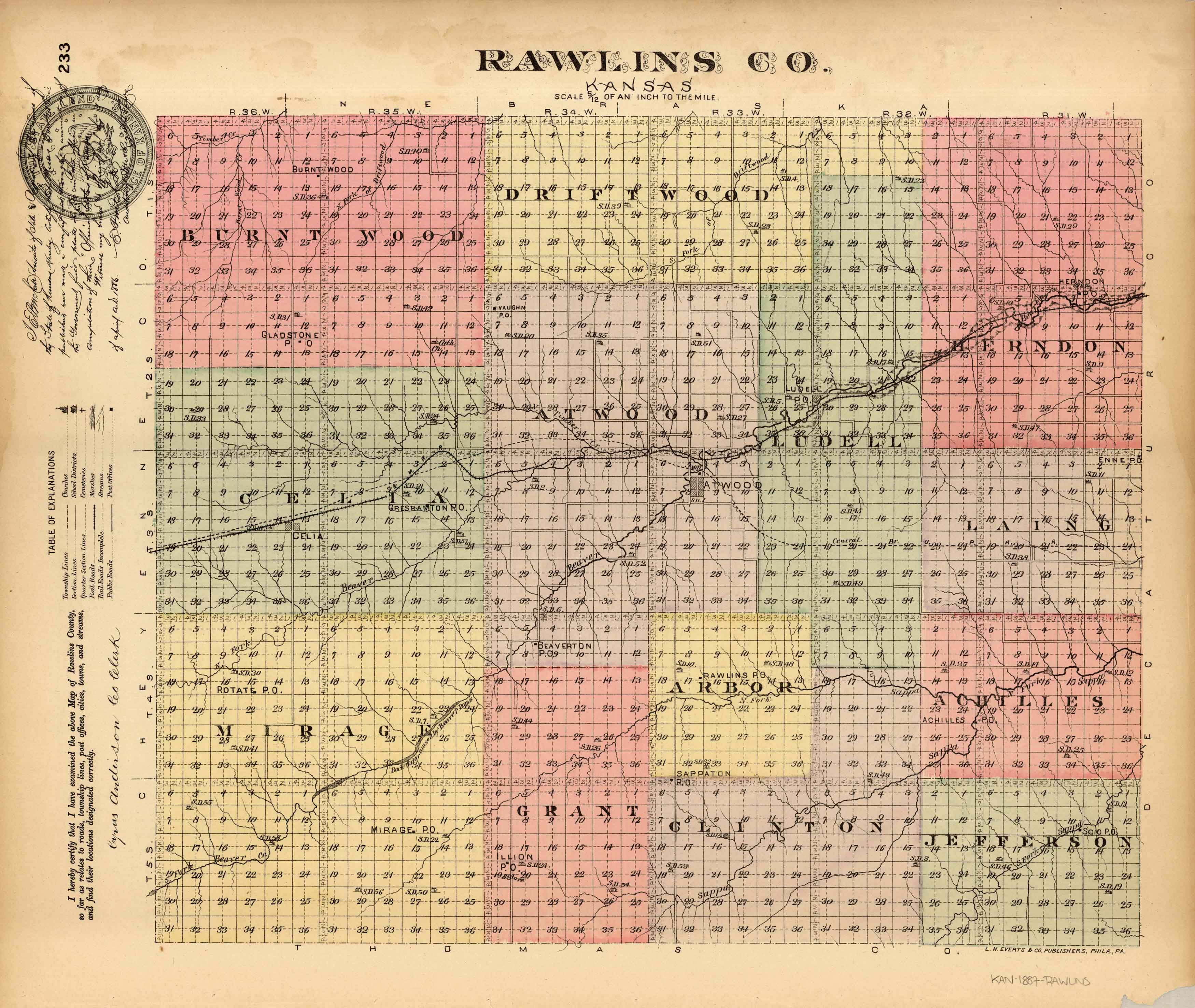 L.H. Evert’s 1887 Map of the Rawlins County, Kansas