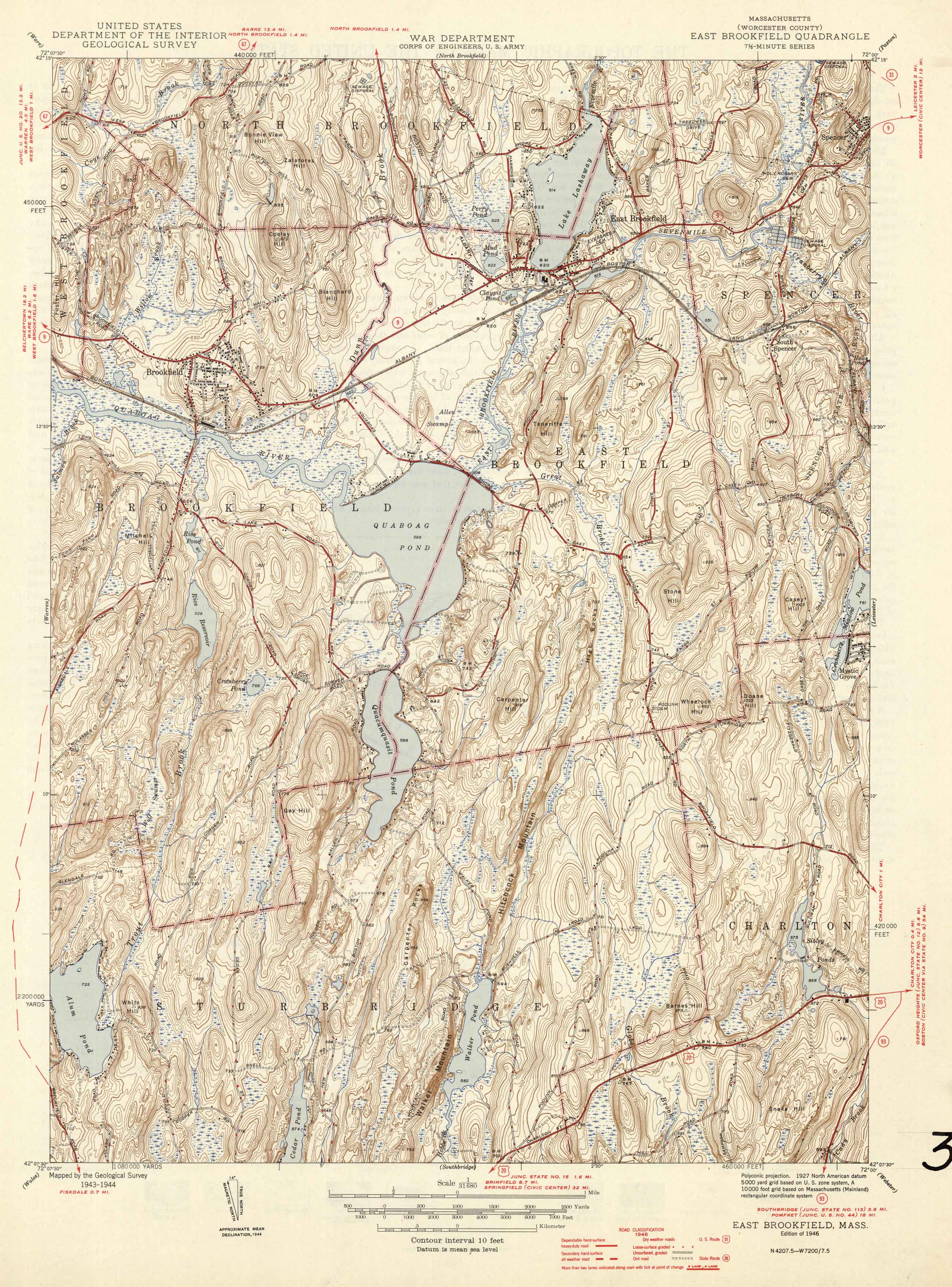 U.S. Geologic Survey 1946 Map of East Brookfield, Massachusetts