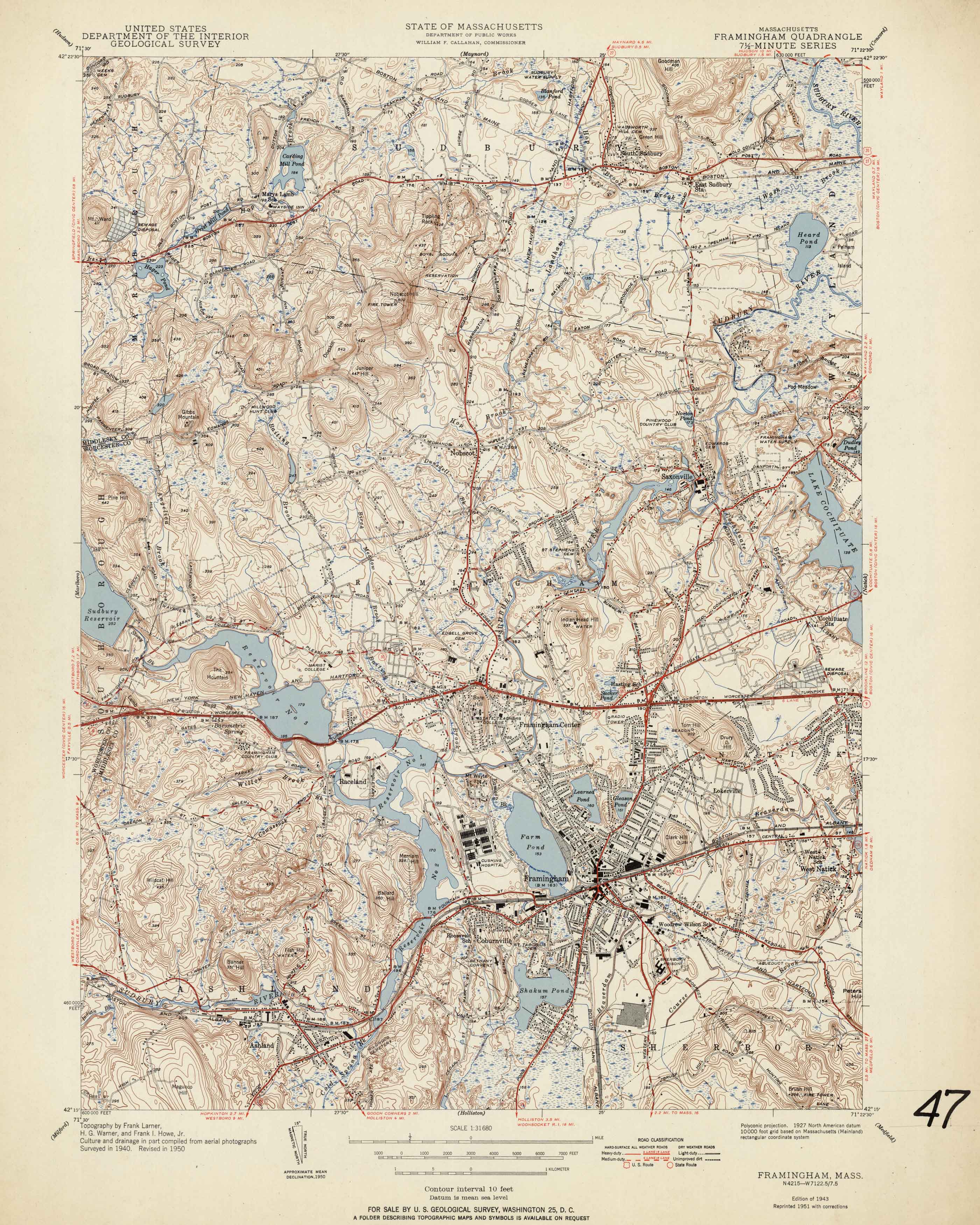 U.S. Geologic Survey 1951 Map of Framingham, Massachusetts
