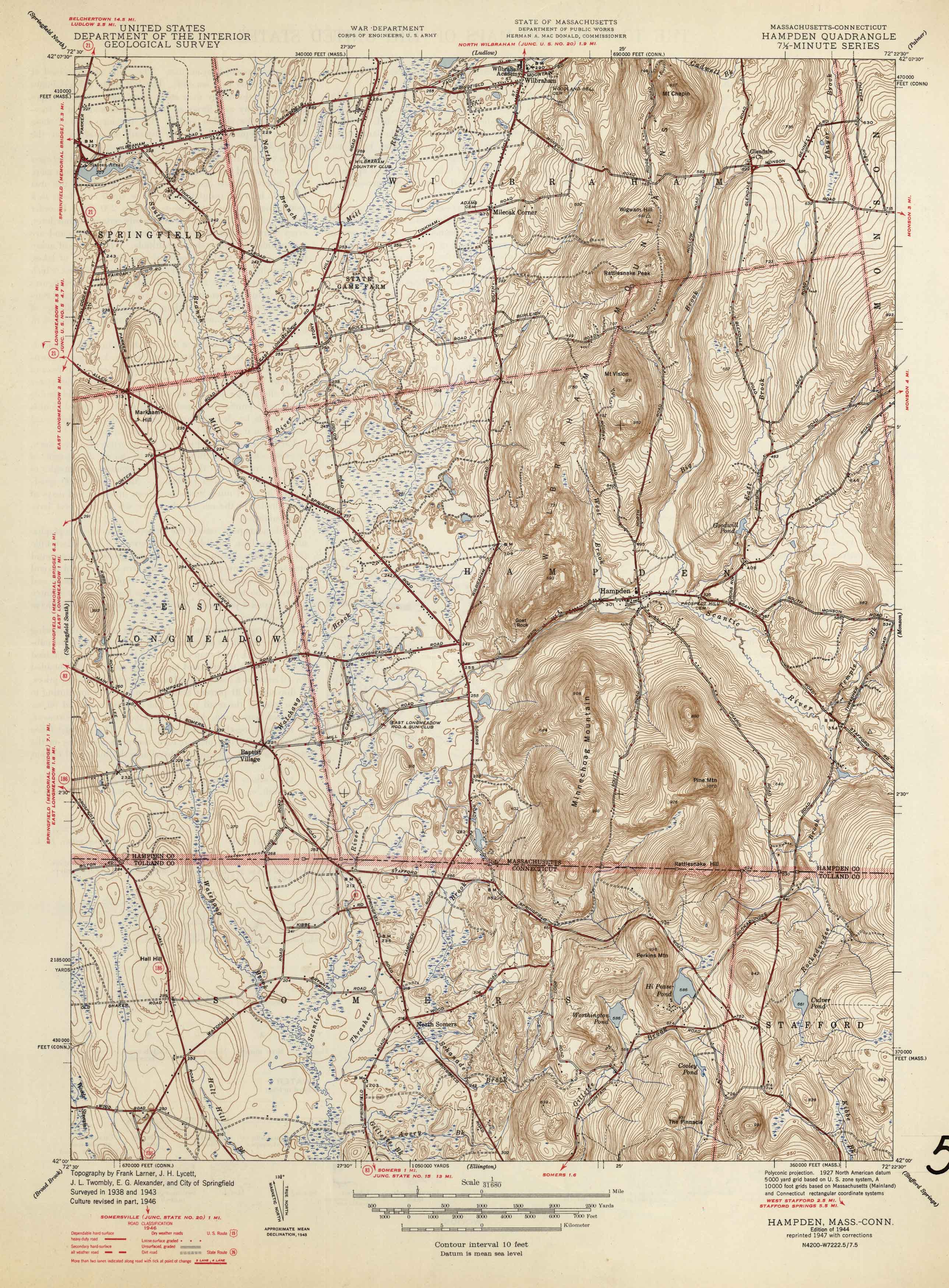 U.S. Geologic Survey 1947 Map of Hampden, Massachusetts
