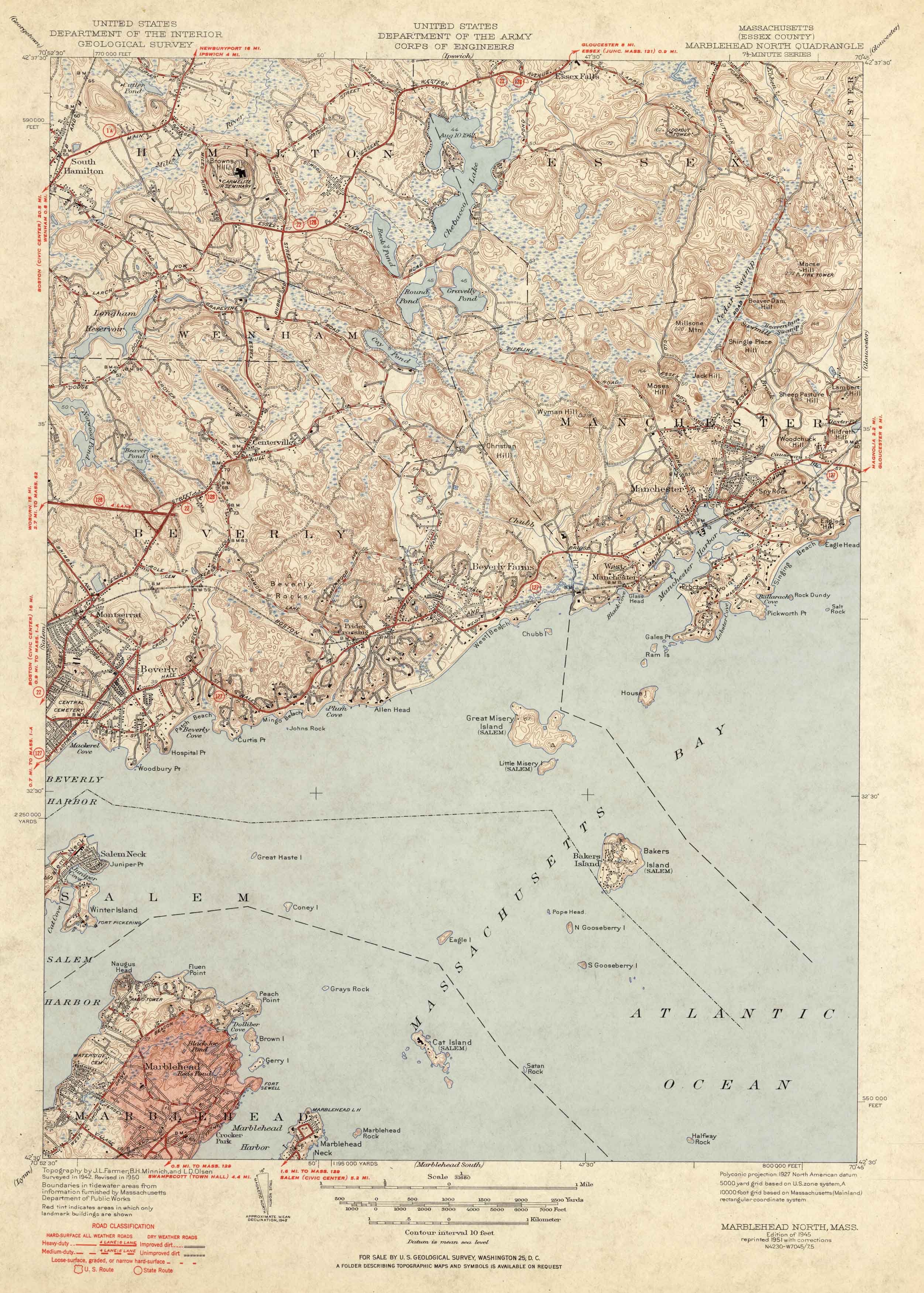 U.S. Geologic Survey 1951 Map of Marblehead North, Massachusetts