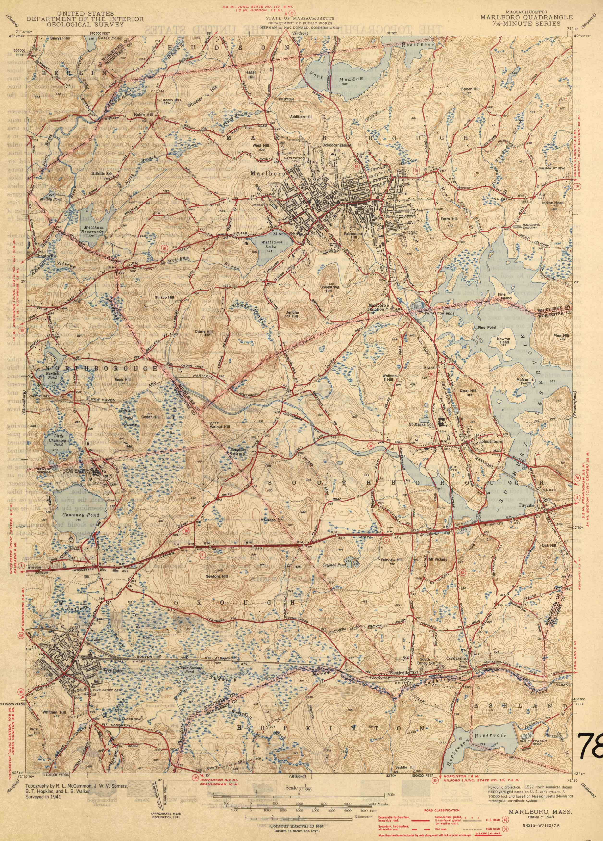 U.S. Geologic Survey 1943 Map of Marlboro, Massachusetts