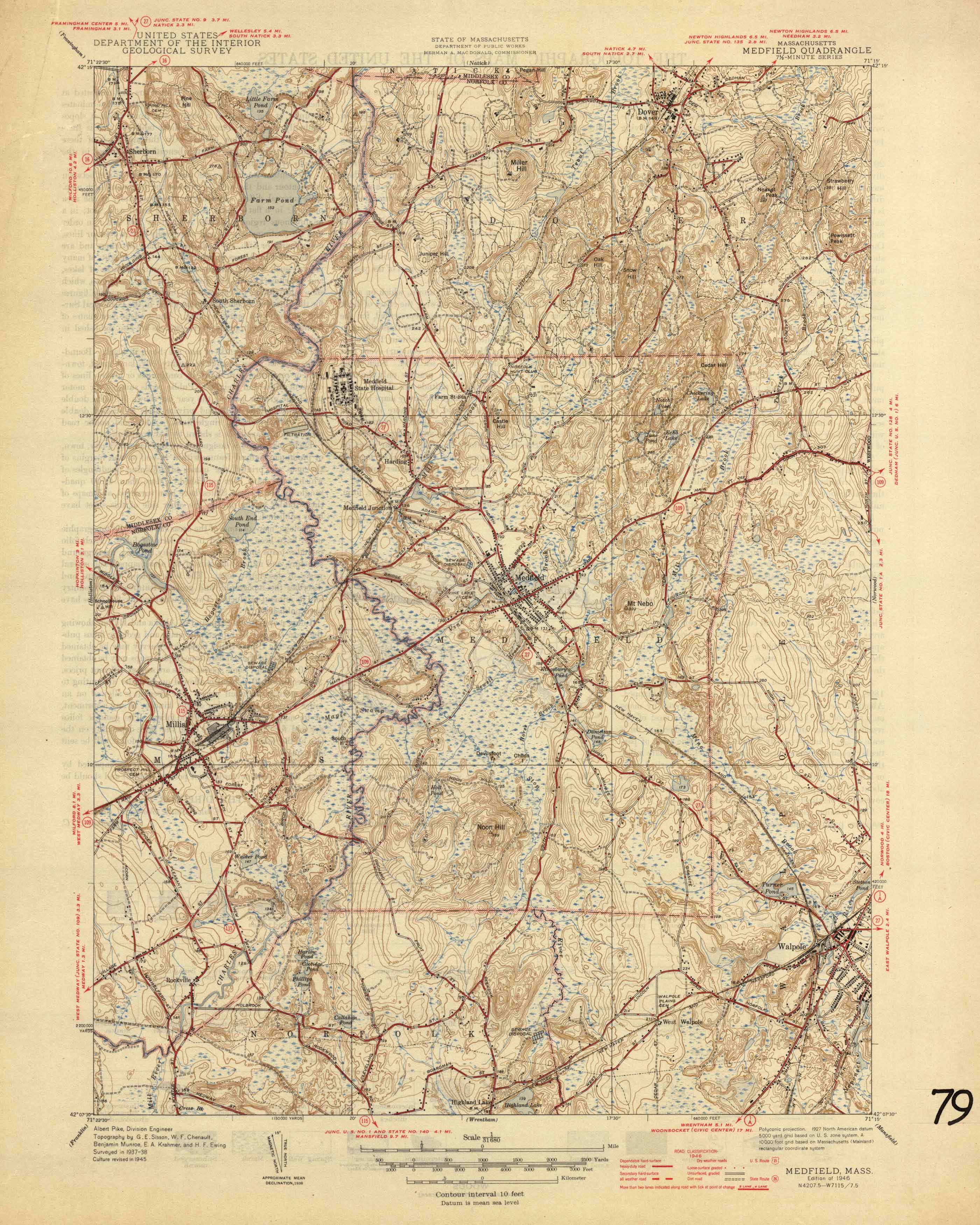 U.S. Geologic Survey 1946 Map of Medfield, Massachusetts