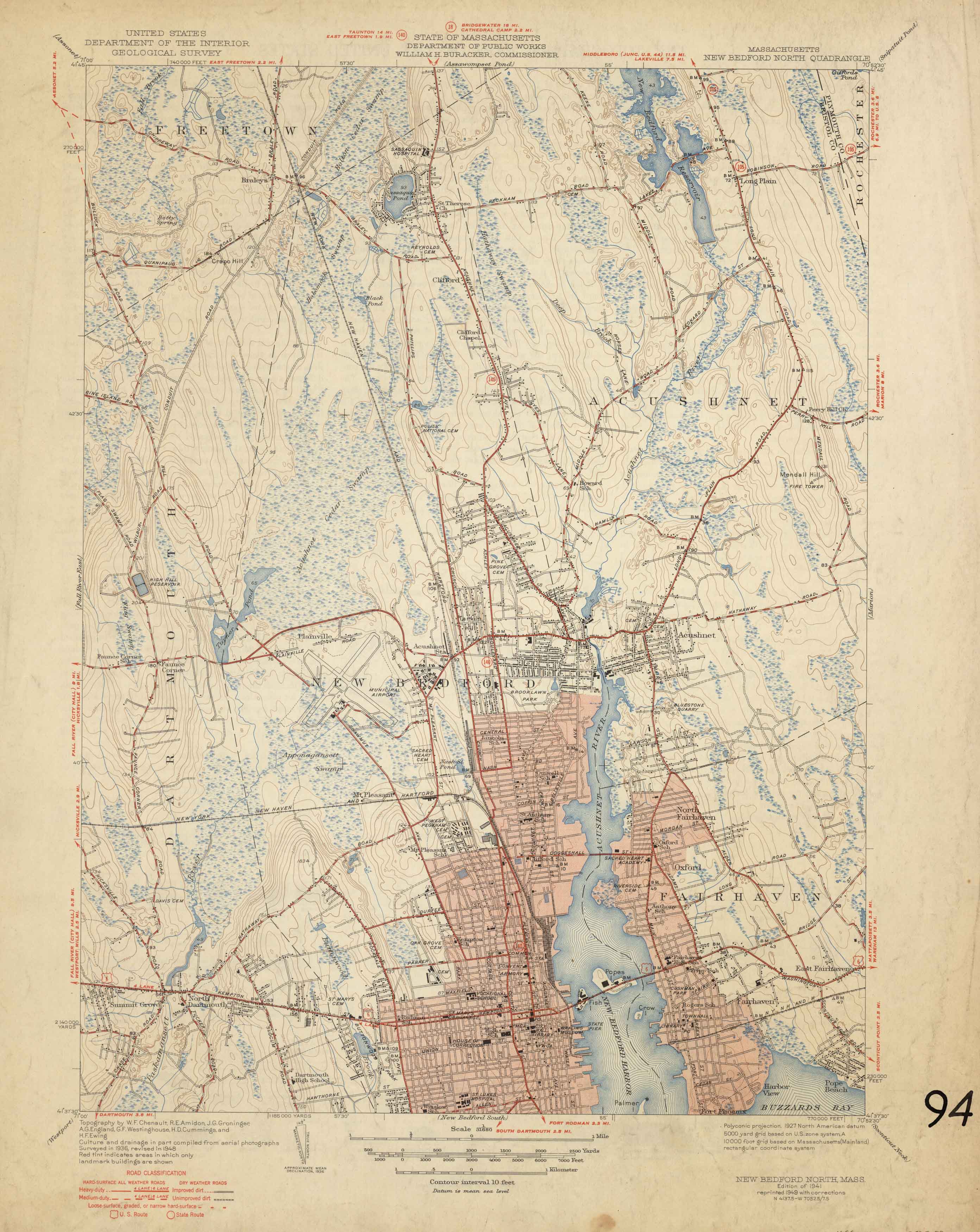 U.S. Geologic Survey 1949 Map of New Bedford North, Massachusetts