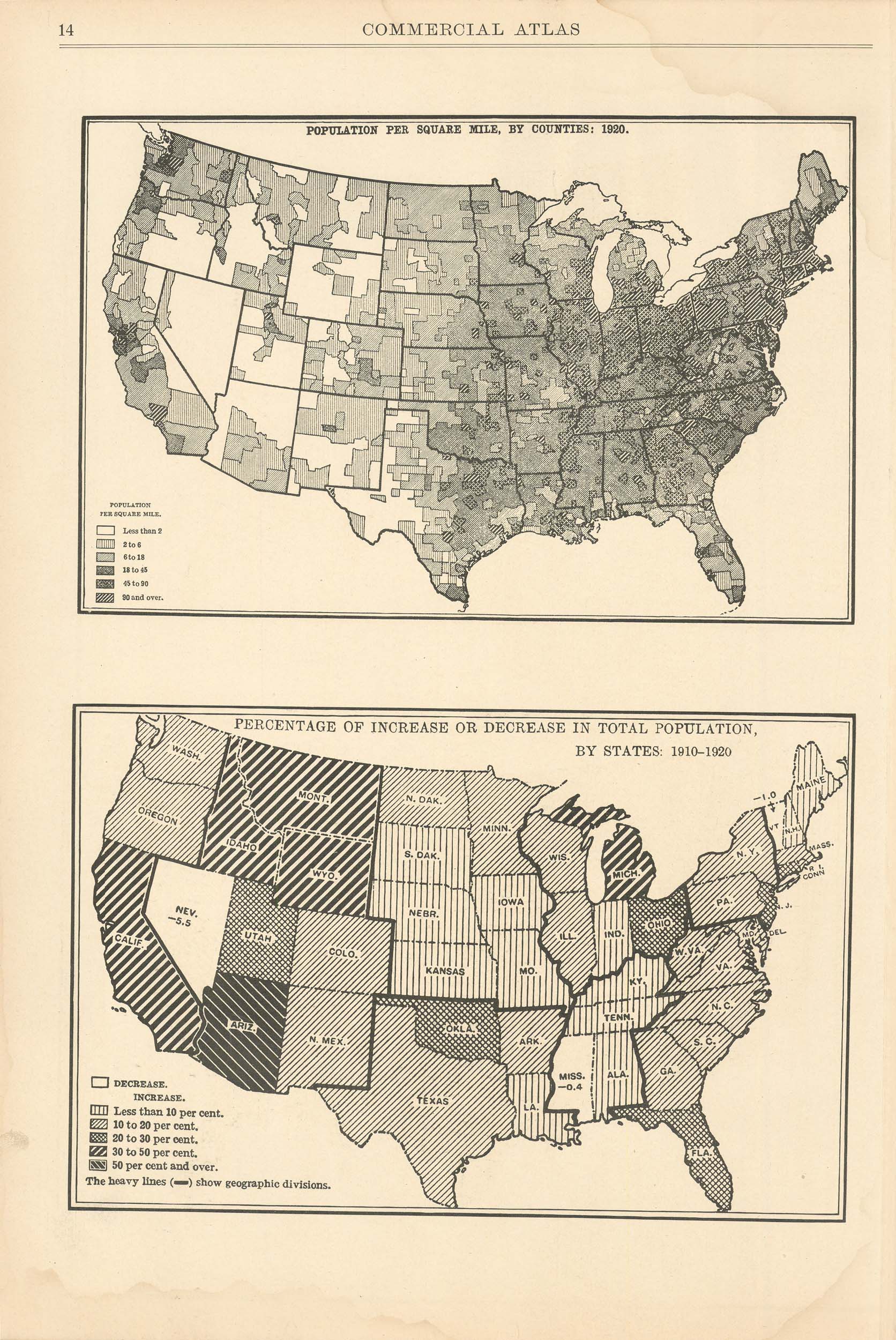 McNally’s 1928 Population Map of the United States (Per Sq. Ft. & Percentages)