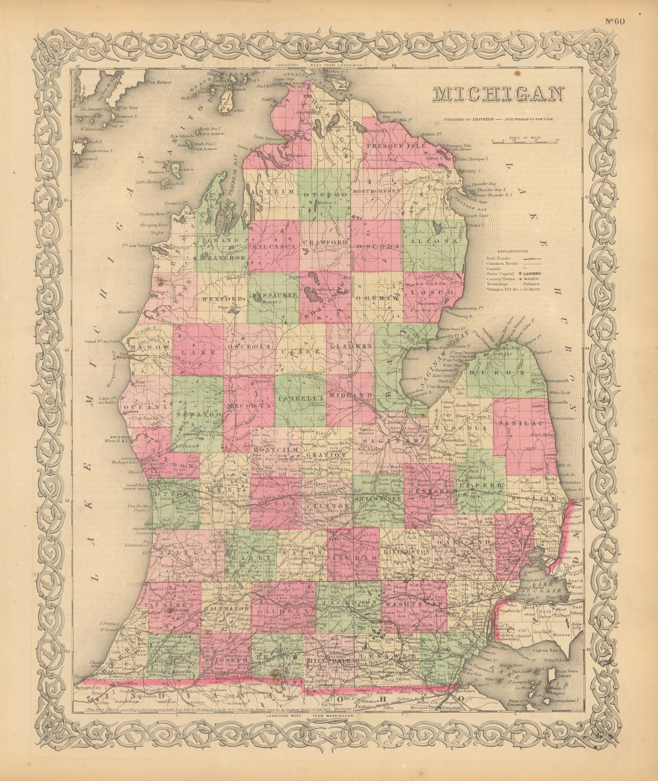 We are pleased to offer this map issued as part of Colton’s General Atlas, published in 1865. The Civil War ended April 9, 1865 and this atlas was one of the first post-Civil War atlas’ published. Colton continued his tradition of beautiful hand coloring with this atlas.