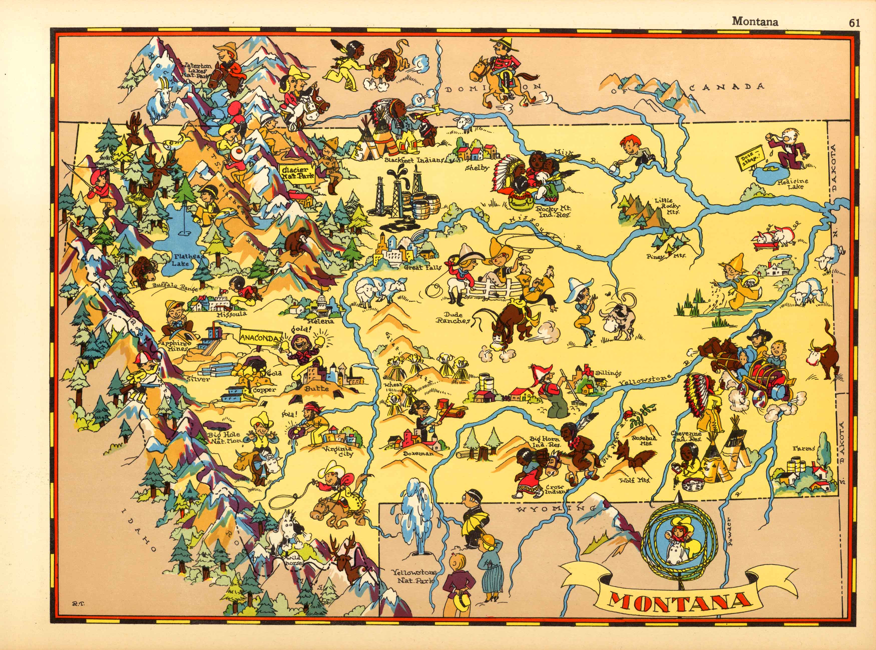 This charming antique pictorial map was published in 1935 by the famous mapmaker & illustrator, Ruth Taylor (White). These illustrated maps came from the atlas, “Our U.S.A – A Gay Geography,” with text by Frank Taylor & the maps done by Ruth Taylor. Ruth Taylors maps have become increasingly rare. Her whimsical maps are bold, colorful, and full of life; showing the local feel, cultural stereotypes, industries and activities of the area. These maps have become very difficult to find and would be a great addition to any map collection.
