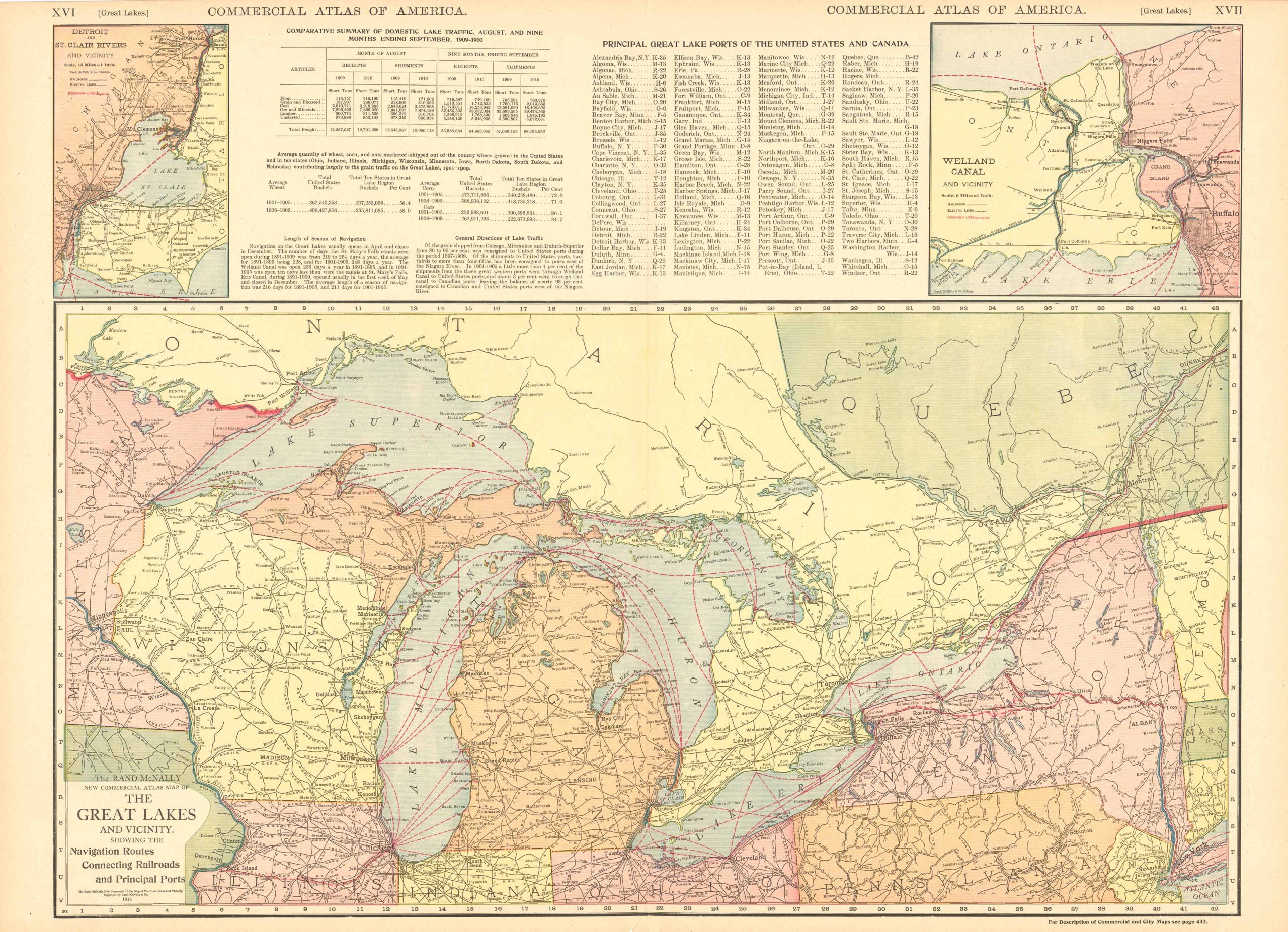 McNally’s 1915 Map of the Great Lakes and Vicinity Showing the Navigation Routes Connecting Railroads and Principal Ports