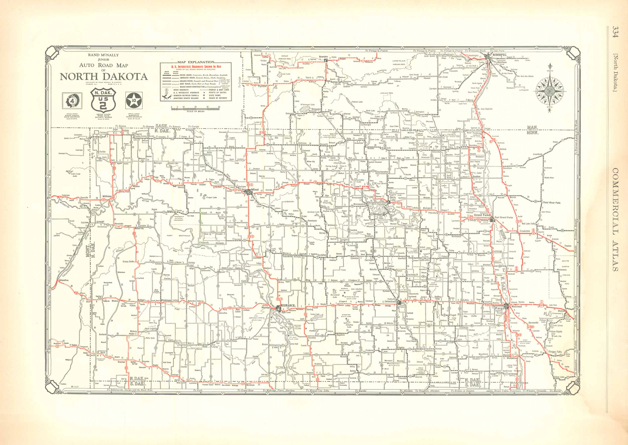 Rand McNally Junior Auto Road Map of North Dakota