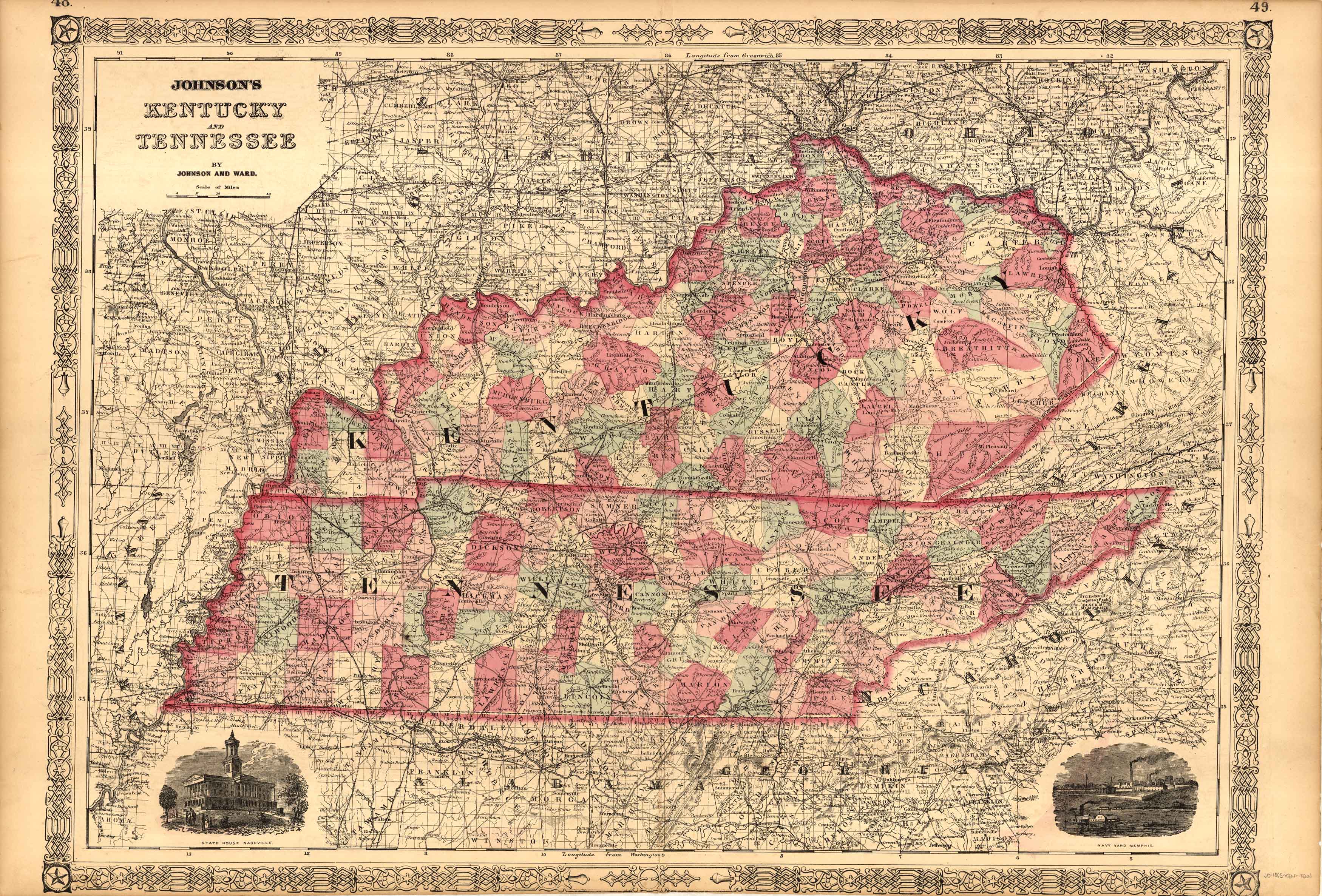 Near the forefront of the atlas publication industry for a quarter century was mapmaker and aggressive marketer Alvin Jewitt Johnson. Around 1860, in a transaction that remains somewhat mysterious, Johnson acquired a set of detailed plates from J.H. Colton, one of the foremost mapmakers of the century, and used them to print the Johnson atlas that was to find its way into homes across the country. Johnson’s New Illustrated Family Atlas was first published in 1860, and today these maps have become prized collectibles and true works of cartographic art. The attention to detail and fine hand coloring of these maps make them some of the best collectibles maps from the 19th century.