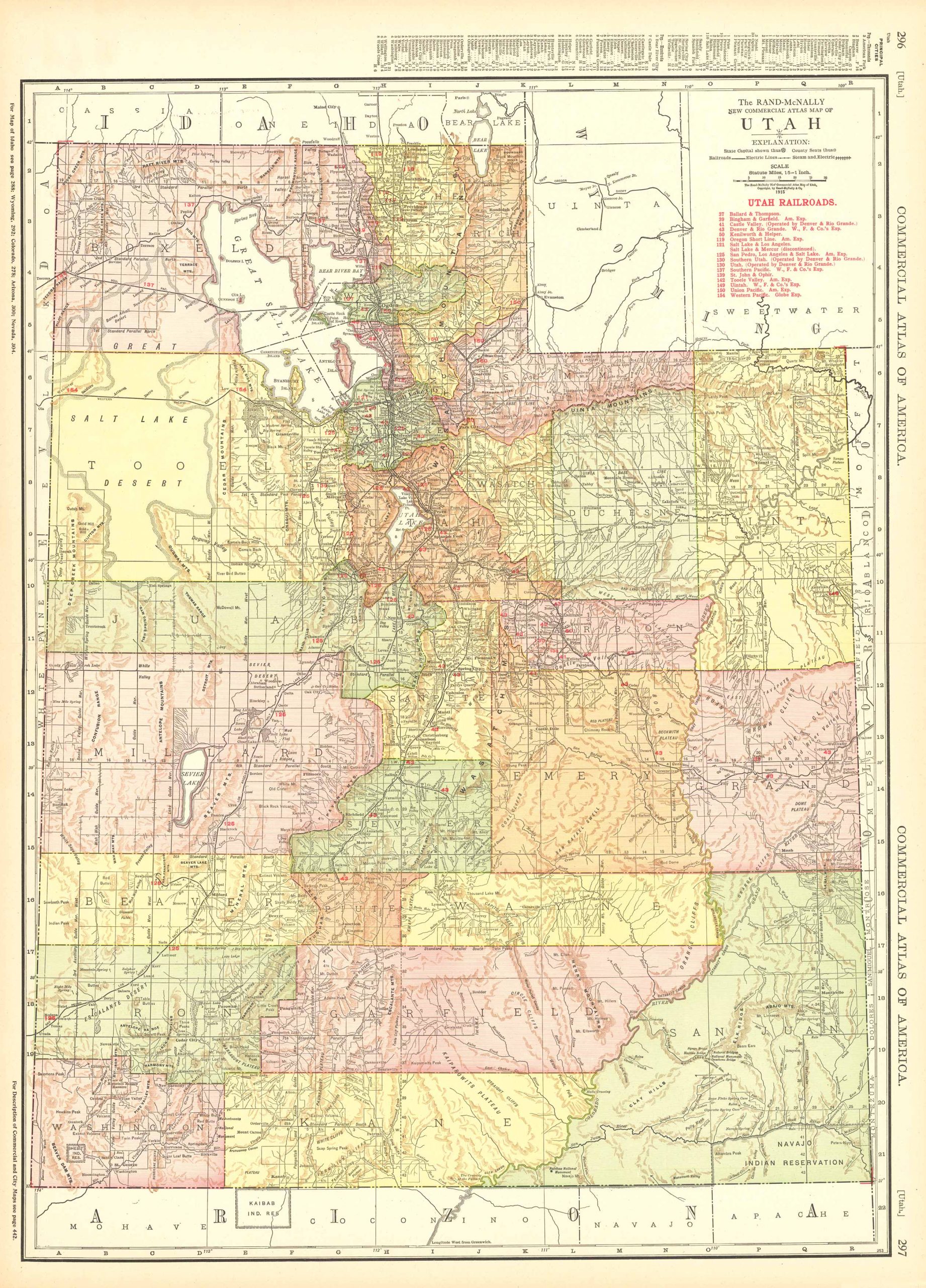 This map of Texas was produced by Rand McNally and Co. as part of its Commercial Atlas of America. The detail shown on each map is exceptional because of the map size. These maps were intended to be used by business for shipping, etc. Roads, railroads, and rivers are clearly shown. There is more detail on these maps than any others during this time period.