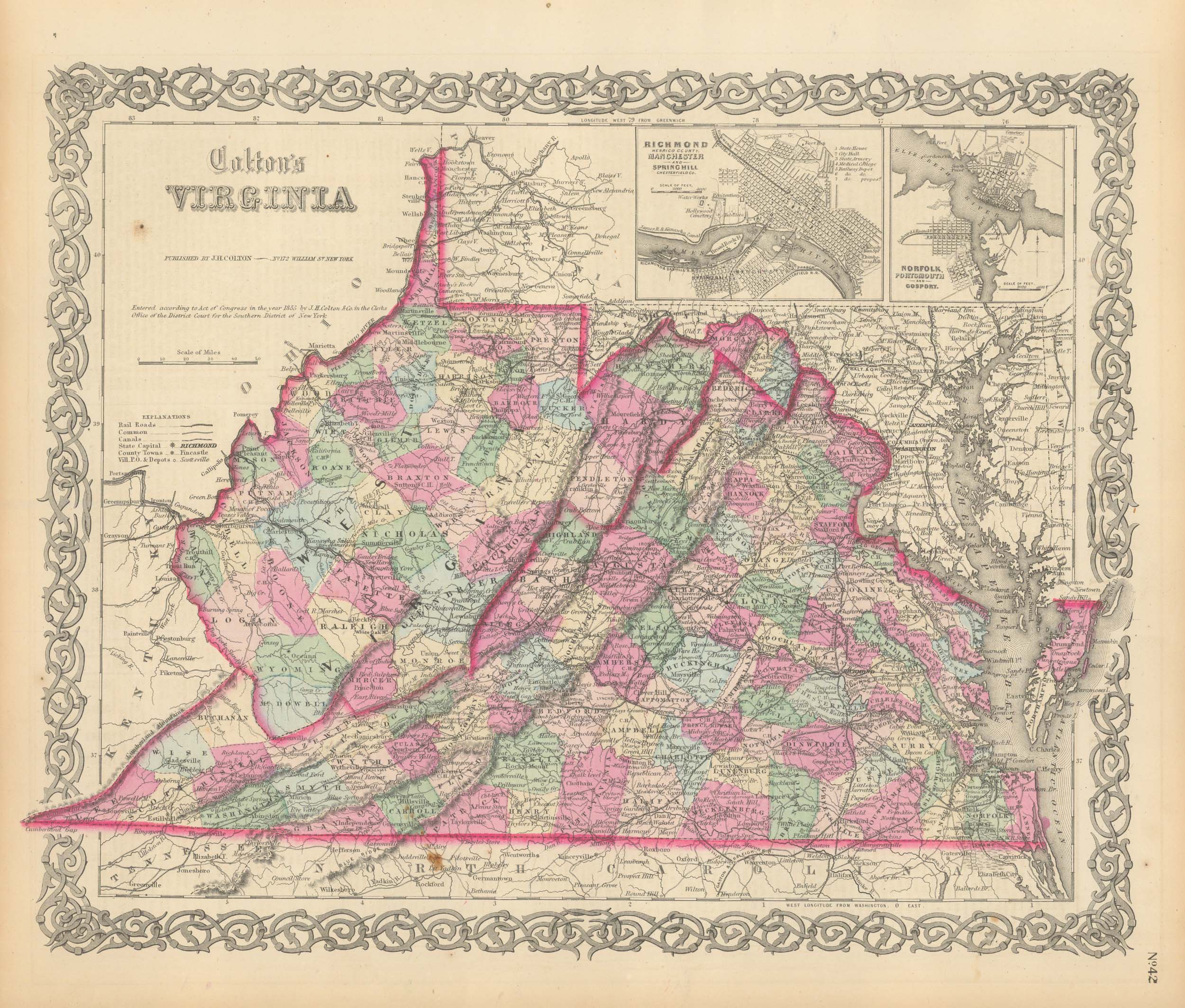 We are pleased to offer this map issued as part of Colton’s General Atlas, published in 1865. The Civil War ended April 9, 1865 and this atlas was one of the first post-Civil War atlas’ published. Colton continued his tradition of beautiful hand coloring with this atlas.