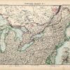 Adolf Stieler produced this exceptional map in 1905 for his “Hand-Atlas”. Maps produced by Stieler are known for their exceptional lithography and details include the names of regions and many cities, rivers, lakes, mountains, canals, railroads and other travel routes. Inset maps show Boston and New York.