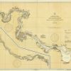 This coastal survey was printed by the U.S. Coast and Geodetic Survey Office in Washington D.C. Details include the names of cities and waterways along the coast. Depth soundings are shown in fathoms. Other details that may be included are lighthouses and buoy positions.