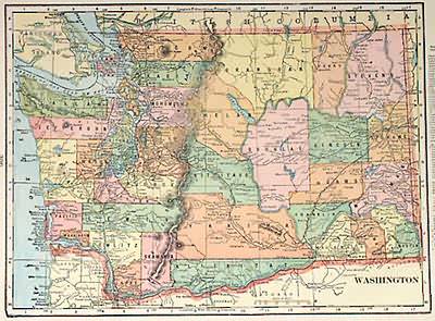 This map was produced for the “Monarch Standard Atlas” , by J.Martin Miller in 1905. Washington is illustrated on this map, with a list of counties and chief cities to the right of the page. Counties are distinguished by color. Other details include major roads,illustrations of lakes, rivers,national parks, and mountains. The atlas proclaimes that it offers “complete, original and authentic maps of the present developement of all the countries, empires and states of the world comprising a graphic description of the people: their civilization, their religion, their government, their cities, their important exports, their wealth, their railways, their canals, their cables, their telegraphs, ect., including a description of their climate, the productions, the rivers, the valleys, the lakes, the mountains, the minerals, the glaciers, and every other subject of interest to the american people.”