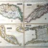 This hand colored map was made in 1817 by Thomson for his “New General Atlas”. Four islands of the West Indies are illustrated on this map. The names of islands, regions, important cities, some topography, and major roads are shown. The majority of the maps are in black and white with outlines in bright color. An inset on the map of Curacao shows Ft. Amsterdam.