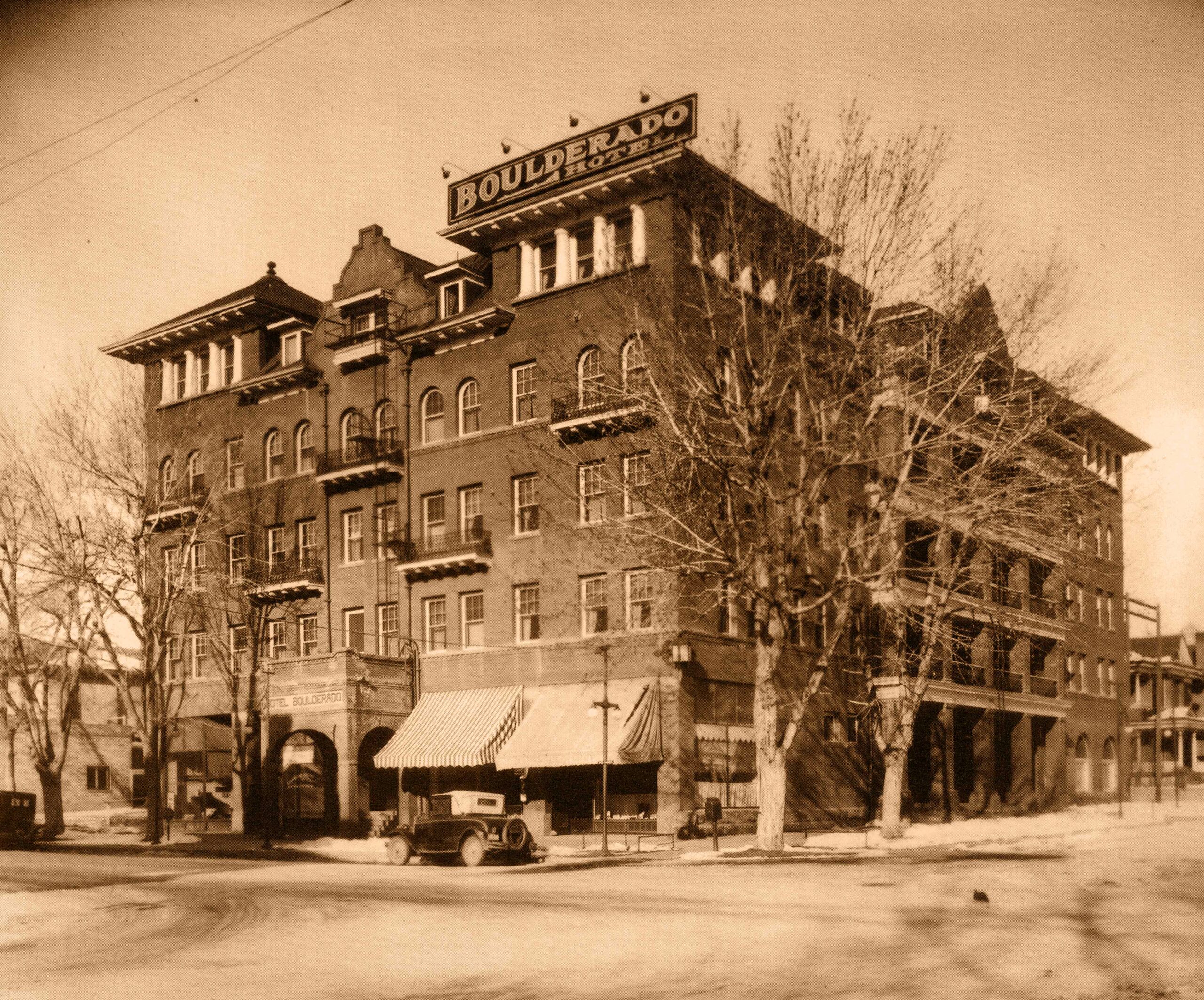 The Hotel Boulderado opened in 1909 and was one of the first luxury hotels in the area. Its historic charm, including a grand lobby with a stained-glass ceiling, has made it a beloved landmark in the city for over a century. Image by Ed Tangen, 1929.