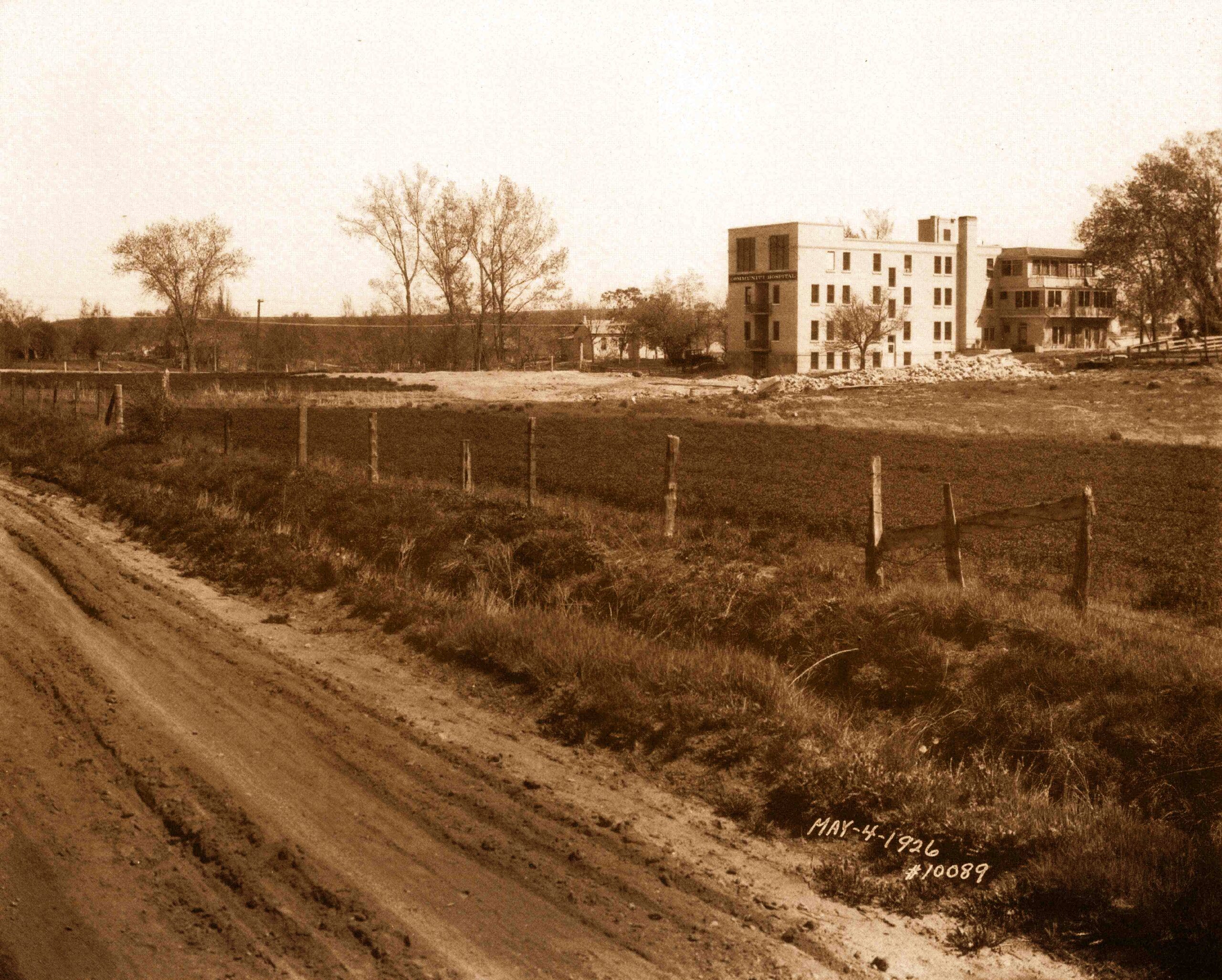 This photo was taken one month before a new wing of Boulder Hospital began construction on, now, Broadway and Alpine. Balsam is at the foreground of the image. Image by Ed Tangen, 1926.