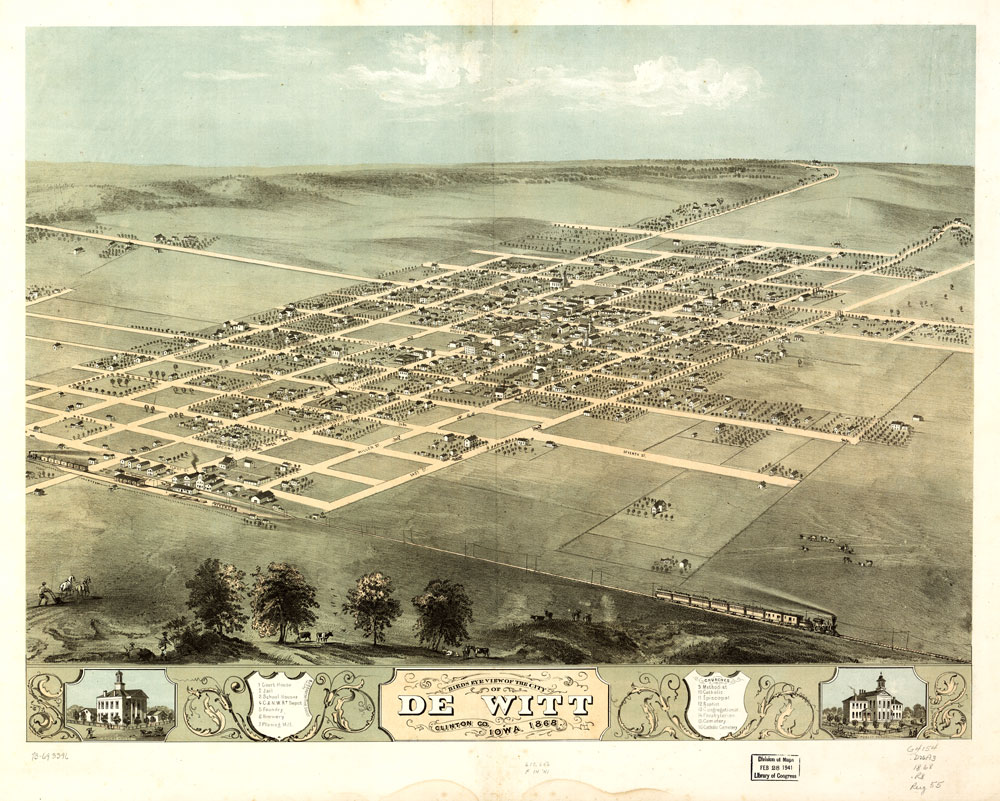 Panoramic city maps, popular at the turn of the century, depicted U.S. towns from the perspective that came to be known as bird’s-eye maps. These non-photographic old maps, depicted from oblique angles, showed street patterns, buildings and the predominant surrounding landscape in perspective. Going to great lengths to make these maps, artists would often climb surrounding hills or trees, sometimes even building platforms from which to achieve the bird’s eye” perspective. They also used to take rides in hot air balloons in order to get the proper perspective. To bolster sales of these old panoramic city maps, the artists would often choke town harbors full of ships, include proposed building developments and depict a vivacious, bustling industry. Historically interesting and beautifully drawn, it is no wonder these old panoramic city maps are making a popular comeback. Bring the spirit of your town’s history back to life with these stunning old bird’s-eye maps.”