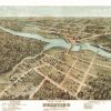 Panoramic city maps, popular at the turn of the century, depicted U.S. towns from the perspective that came to be known as bird’s-eye maps. These non-photographic old maps, depicted from oblique angles, showed street patterns, buildings and the predominant surrounding landscape in perspective. Going to great lengths to make these maps, artists would often climb surrounding hills or trees, sometimes even building platforms from which to achieve the bird’s eye” perspective. They also used to take rides in hot air balloons in order to get the proper perspective. To bolster sales of these old panoramic city maps, the artists would often choke town harbors full of ships, include proposed building developments and depict a vivacious, bustling industry. Historically interesting and beautifully drawn, it is no wonder these old panoramic city maps are making a popular comeback. Bring the spirit of your town’s history back to life with these stunning old bird’s-eye maps.”