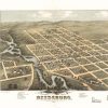 Panoramic city maps, popular at the turn of the century, depicted U.S. towns from the perspective that came to be known as bird’s-eye maps. These non-photographic old maps, depicted from oblique angles, showed street patterns, buildings and the predominant surrounding landscape in perspective. Going to great lengths to make these maps, artists would often climb surrounding hills or trees, sometimes even building platforms from which to achieve the bird’s eye” perspective. They also used to take rides in hot air balloons in order to get the proper perspective. To bolster sales of these old panoramic city maps, the artists would often choke town harbors full of ships, include proposed building developments and depict a vivacious, bustling industry. Historically interesting and beautifully drawn, it is no wonder these old panoramic city maps are making a popular comeback. Bring the spirit of your town’s history back to life with these stunning old bird’s-eye maps.”