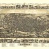 Panoramic city maps, popular at the turn of the century, depicted U.S. towns from the perspective that came to be known as bird’s-eye maps. These non-photographic old maps, depicted from oblique angles, showed street patterns, buildings and the predominant surrounding landscape in perspective. Going to great lengths to make these maps, artists would often climb surrounding hills or trees, sometimes even building platforms from which to achieve the bird’s eye” perspective. They also used to take rides in hot air balloons in order to get the proper perspective. To bolster sales of these old panoramic city maps, the artists would often choke town harbors full of ships, include proposed building developments and depict a vivacious, bustling industry. Historically interesting and beautifully drawn, it is no wonder these old panoramic city maps are making a popular comeback. Bring the spirit of your town’s history back to life with these stunning old bird’s-eye maps.”