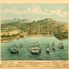 Panoramic city maps, popular at the turn of the century, depicted U.S. towns from the perspective that came to be known as bird’s-eye maps. These non-photographic old maps, depicted from oblique angles, showed street patterns, buildings and the predominant surrounding landscape in perspective. Going to great lengths to make these maps, artists would often climb surrounding hills or trees, sometimes even building platforms from which to achieve the bird’s eye” perspective. They also used to take rides in hot air balloons in order to get the proper perspective. To bolster sales of these old panoramic city maps, the artists would often choke town harbors full of ships, include proposed building developments and depict a vivacious, bustling industry. Historically interesting and beautifully drawn, it is no wonder these old panoramic city maps are making a popular comeback. Bring the spirit of your town’s history back to life with these stunning old bird’s-eye maps.”