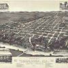 Panoramic city maps, popular at the turn of the century, depicted U.S. towns from the perspective that came to be known as bird’s-eye maps. These non-photographic old maps, depicted from oblique angles, showed street patterns, buildings and the predominant surrounding landscape in perspective. Going to great lengths to make these maps, artists would often climb surrounding hills or trees, sometimes even building platforms from which to achieve the bird’s eye” perspective. They also used to take rides in hot air balloons in order to get the proper perspective. To bolster sales of these old panoramic city maps, the artists would often choke town harbors full of ships, include proposed building developments and depict a vivacious, bustling industry. Historically interesting and beautifully drawn, it is no wonder these old panoramic city maps are making a popular comeback. Bring the spirit of your town’s history back to life with these stunning old bird’s-eye maps.”