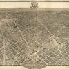 Panoramic city maps, popular at the turn of the century, depicted U.S. towns from the perspective that came to be known as bird’s-eye maps. These non-photographic old maps, depicted from oblique angles, showed street patterns, buildings and the predominant surrounding landscape in perspective. Going to great lengths to make these maps, artists would often climb surrounding hills or trees, sometimes even building platforms from which to achieve the bird’s eye” perspective. They also used to take rides in hot air balloons in order to get the proper perspective. To bolster sales of these old panoramic city maps, the artists would often choke town harbors full of ships, include proposed building developments and depict a vivacious, bustling industry. Historically interesting and beautifully drawn, it is no wonder these old panoramic city maps are making a popular comeback. Bring the spirit of your town’s history back to life with these stunning old bird’s-eye maps.”
