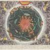 This reproduction of the circa 1665 antique map illustrates all bodies of water on Earth connected by a system of underground waterways. Oceanic whirlpools feed these channels, while mountain springs derive water from these resources, creating a cycle of water above and below ground. Also depicted is a large ball of fire in the center of the earth, suggesting that this inferno causes lava and water to rise from Earth’s interior. This map was created by Jesuit priest and scholar Athanasius Kircher, this intriguing map of the earth was included in his 1665 treatise “Mundus Subterraneus.”