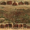 This is a nicely colored bird’s eye view of Los Angeles, California, done in 1891.