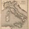 William and Robert Chambers produced this hand colored, 1845 edition of the “Atlas of Modern and Ancient Geography; for use in schools and for general reference” in Edinburgh. Beautiful, vibrant colors outline regions on these otherwise black and white maps. Ancient Italy is illustrated on this map. Details on this map include identification of regions, important cities and towns, rivers, lakes and mountains.