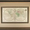 Here we have a map of the time when European empires ruled and spanned the globe. This is a time when the fledgling United States, was still coming to grips with what the continent held, and geographically how to surmount what they now possessed. Throughout the rest of the world, we see exploration in action, as the South Pacific and the continent of Australia (here “New Holland”) are being redefined, and in some instances located for the first time. Between the equators, we see the ocean currents and their directions. Surrounding the hemispheres are instructional spheres showing us how to identify meridians, parallels, circles, zones and others related issues. The map itself is in good condition, with strong hand color. Elegantly framed with cloth matting, inner liner, handsome gold frame and more. All archival materials and precautions have been used in the framing of this beautiful item.