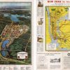 This unique pocket fold map of the Worlds Fair in NYC shows two maps of NY. One side shows a colorful bird’s eye view of the World’s Fair (with a key to the World’s Fair Buildings). The other side shows a map of Rapid Transit of Greater New York with legends surrounding the map showing points of interest (i.e. stadiums, skyscrapers, points of interest, churches, museums, and beaches and amusement parks).