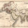 This beautiful antique map of the “Old World” (Africa, Europe, and Asia) was issued in the Atlas of Ancient Geography, by Samuel Butler, in 1827. This original hand colored map shows different countries, cities and towns, mountain ranges, rivers, and other geographic features. This is a great antique map full of ancient history and geography.