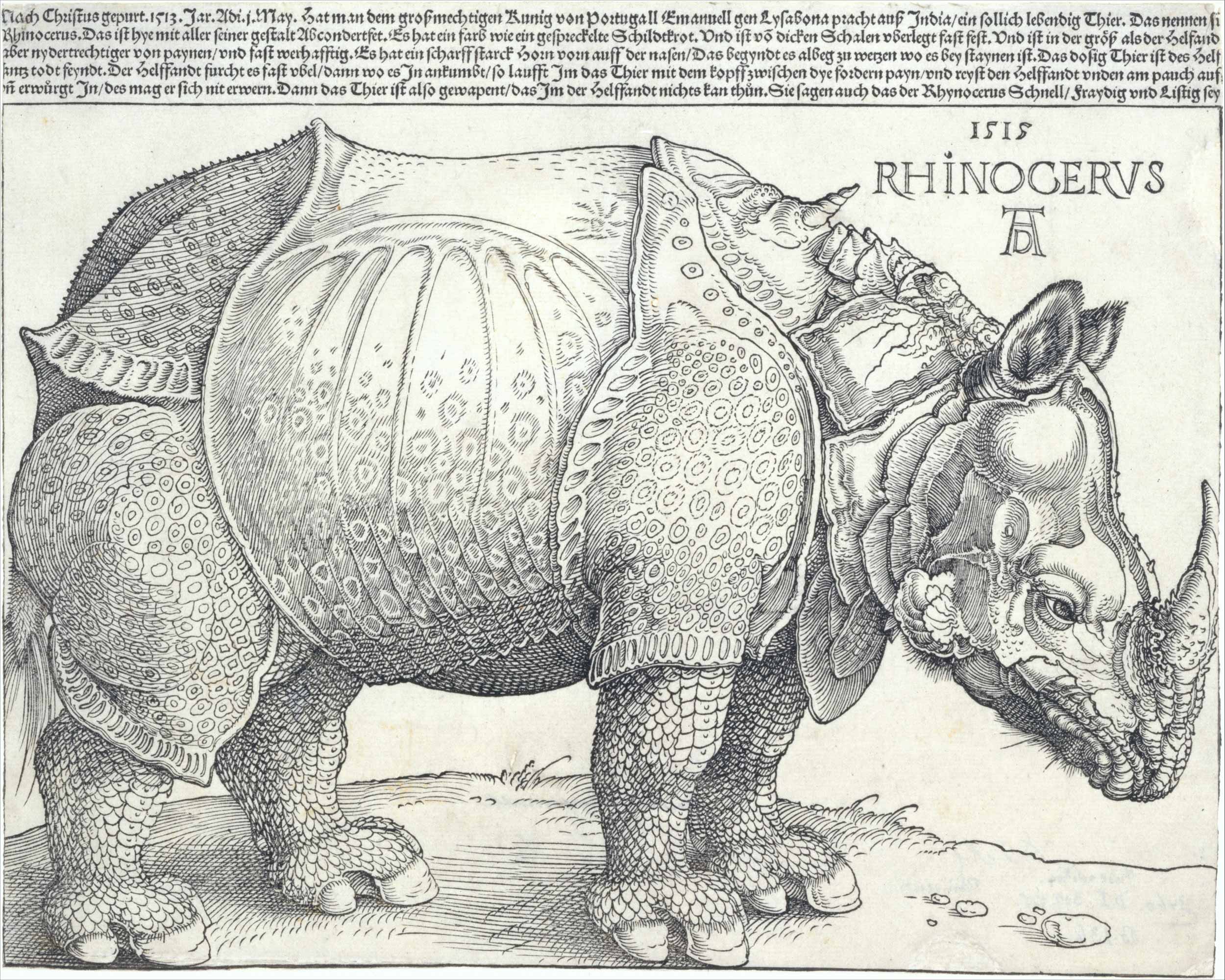 Reproduction of Albrecht Dürer’s 1515 “The Rhinoceros.”