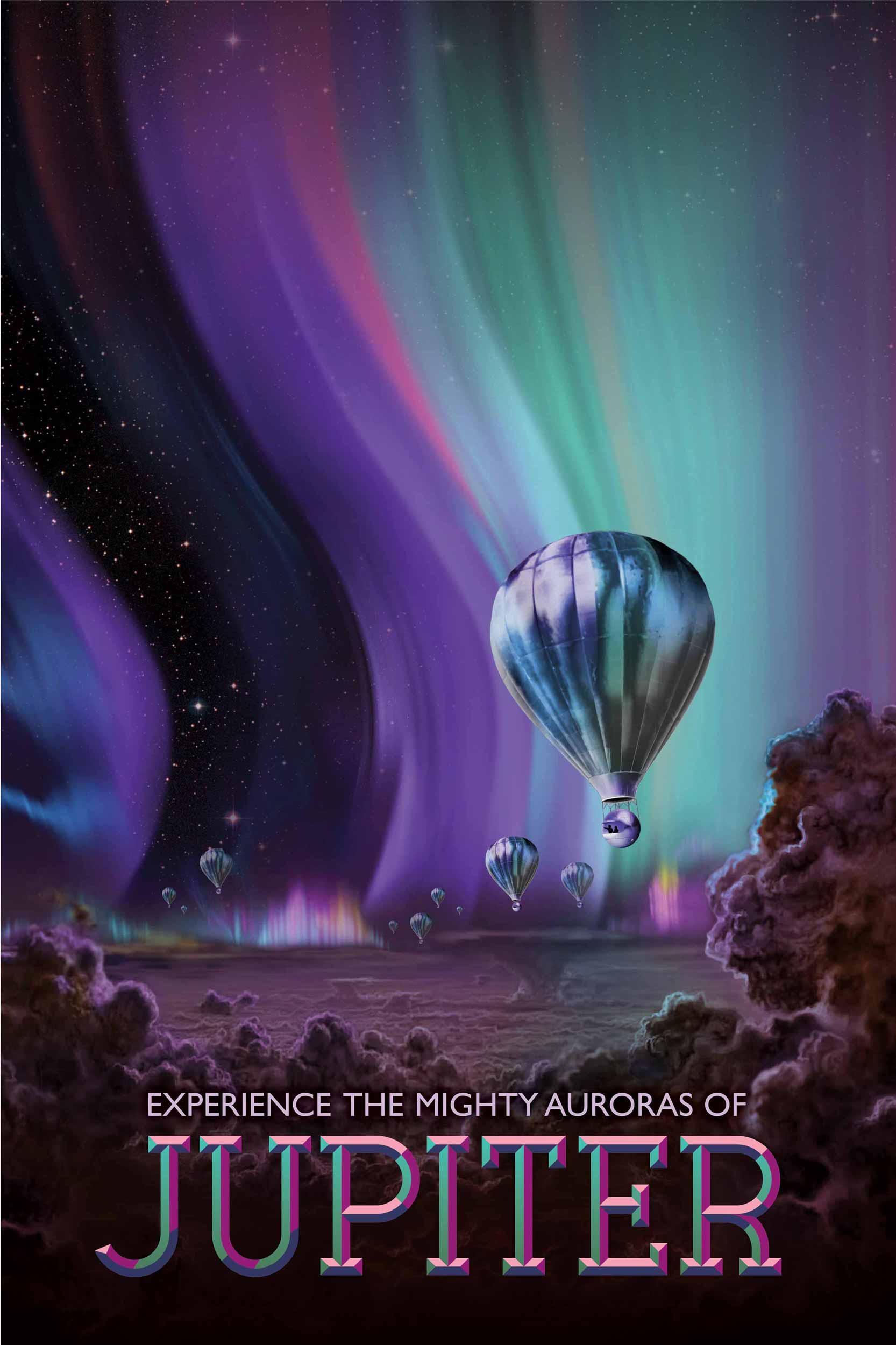 Part of NASA’s Jet Propulsion Laboratory 2019 curated poster gallery, “Visions of the Future.” Inspired by Jupiter’s auroras.