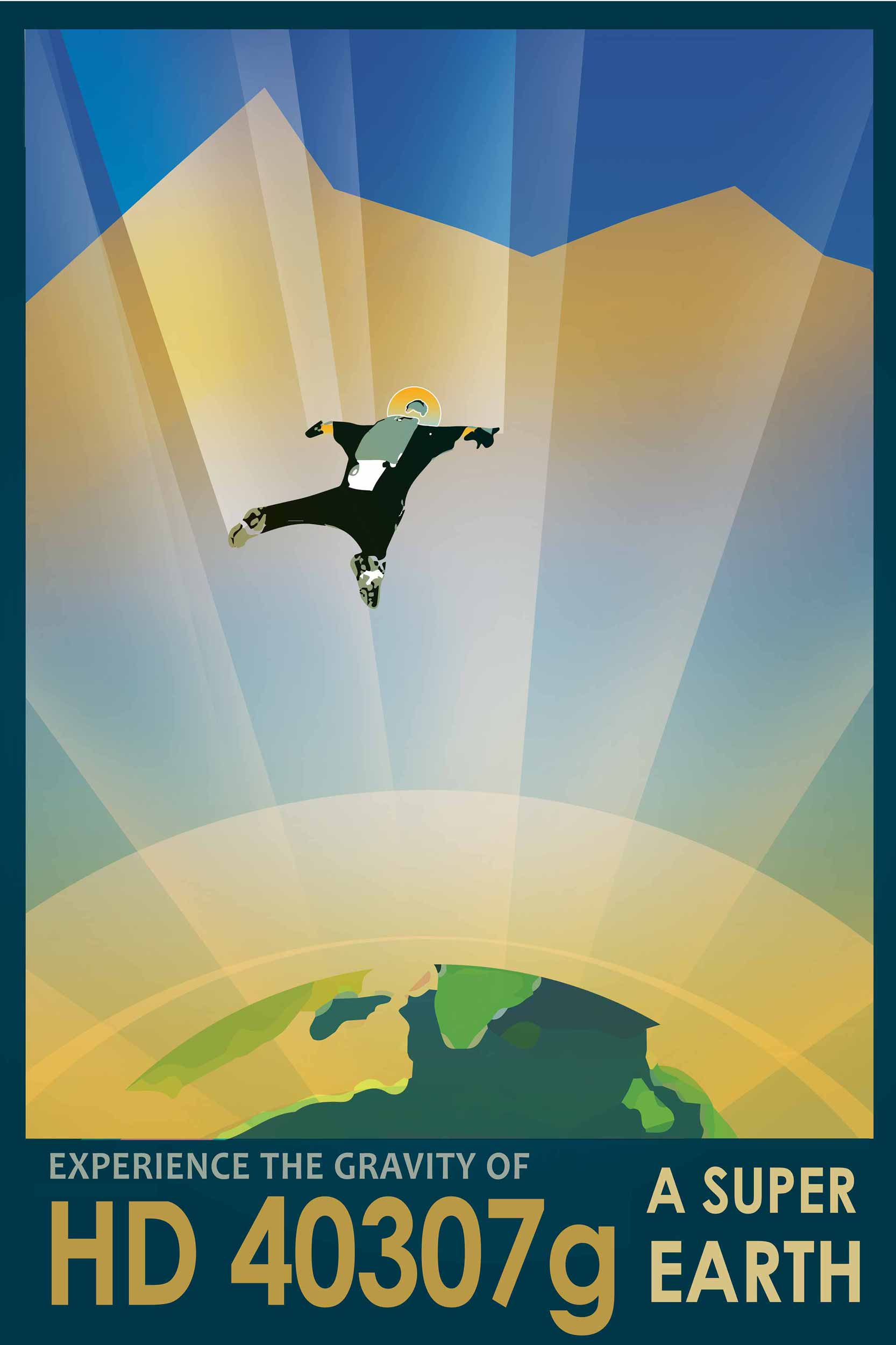 Part of NASA’s Jet Propulsion Laboratory 2019 curated poster gallery, “Visions of the Future.” HD 40307g is an exoplanet candidate with eight times the Earth’s mass, making its gravitational pull is much stronger.